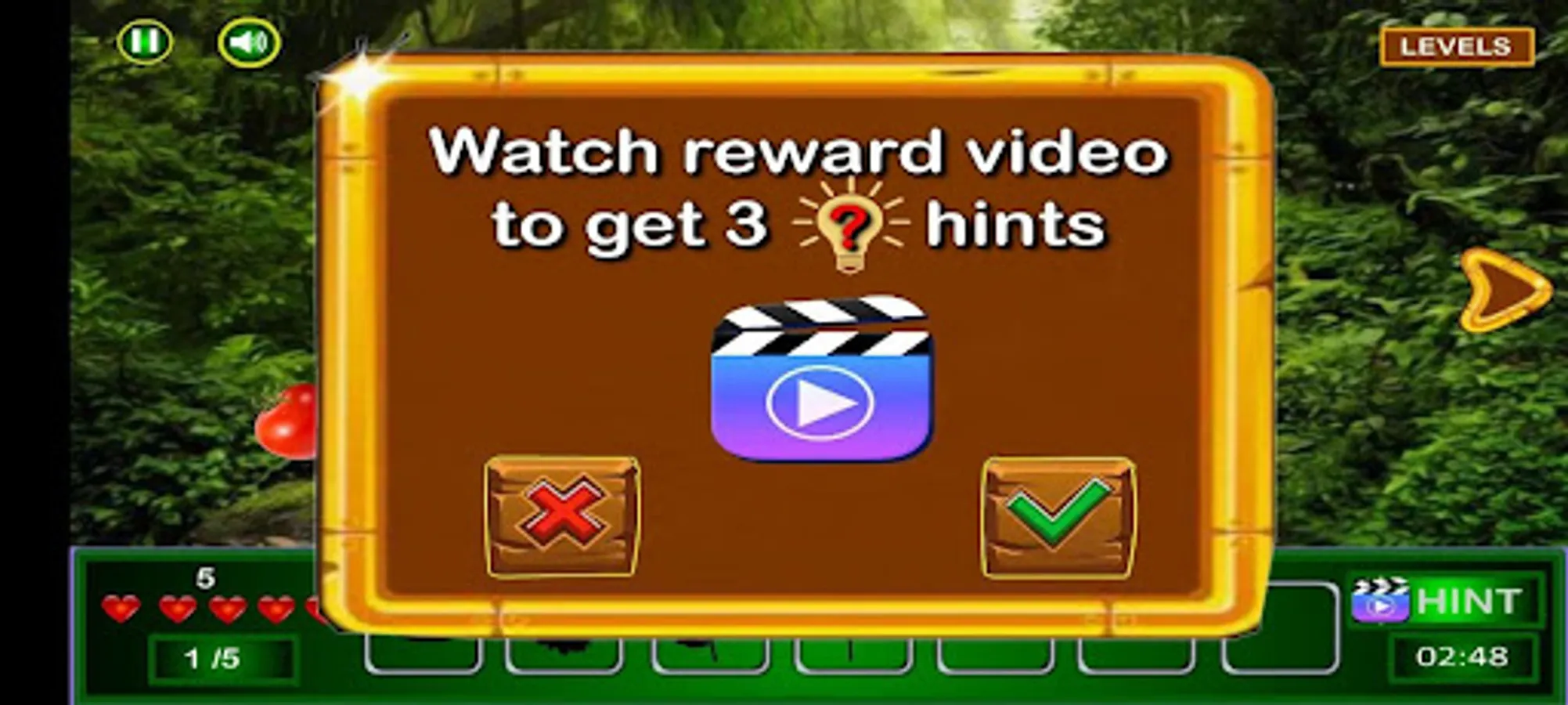π Click on the hint button to see the reward ads and gain 2 hint freely!