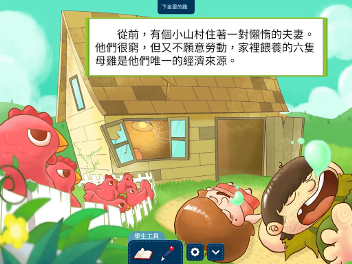 The story comes from Aesop's Fables. The story is about one pair of lazy couple day find their hens gave birth to a golden egg, they are very happy, so they put aside all the work alone sell golden eggs life. But soon they will feel satisfied, began to suspect the chicken's stomach must have gold ......