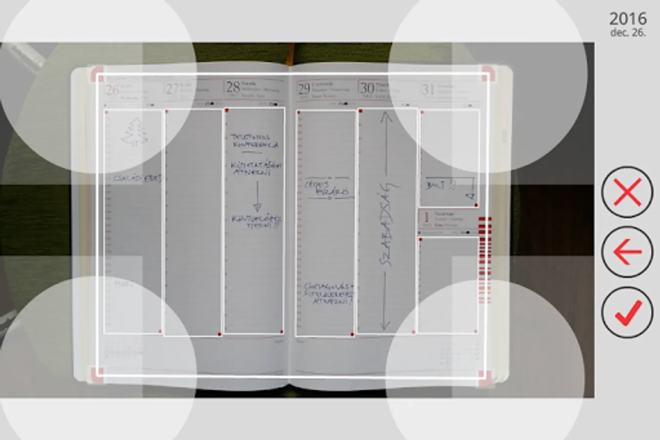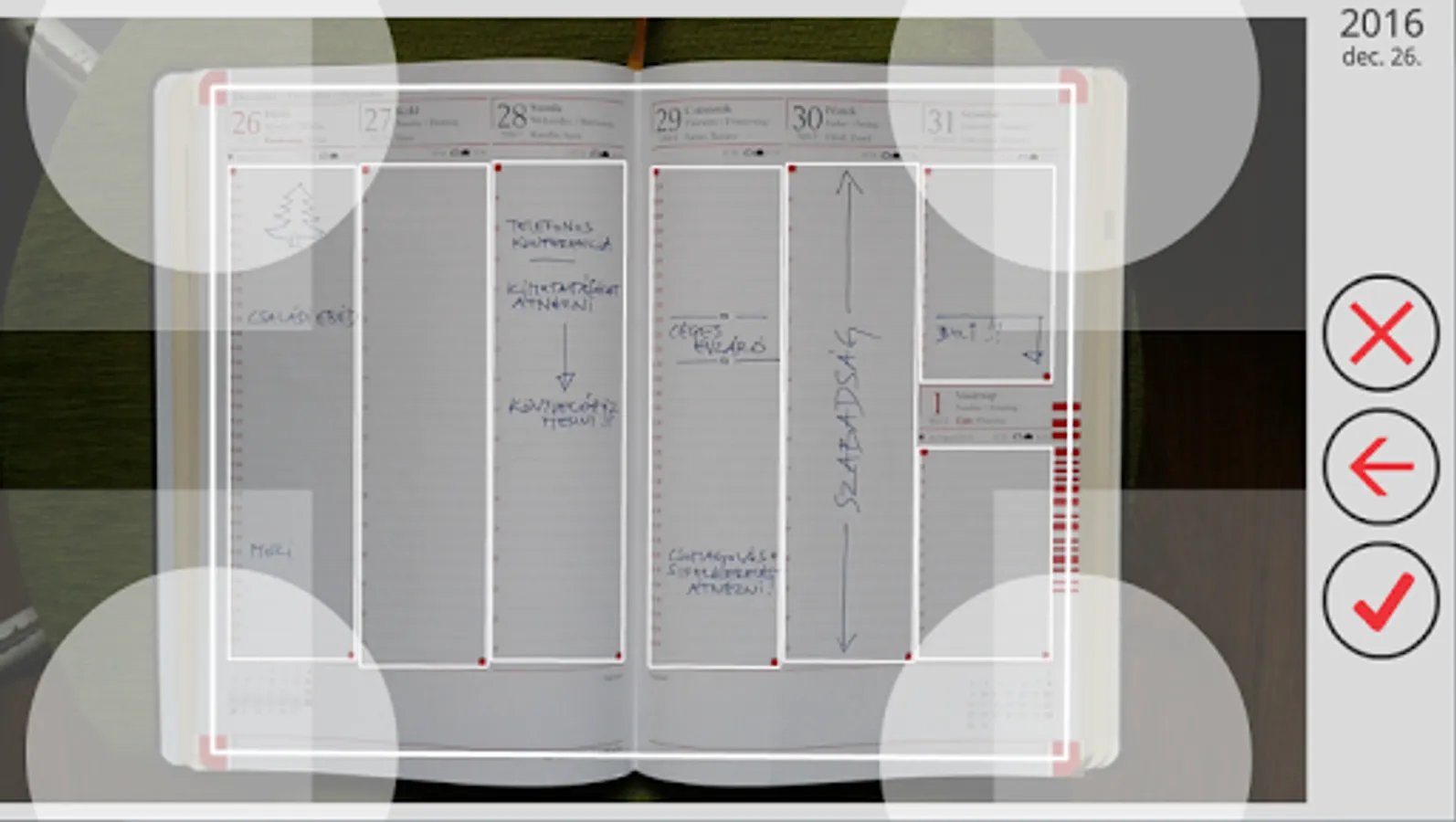 Align the corner markers on the screen, if necessary, the contrast can be corrected, save! Your device Kalendapp® calendar for the current date of the appointment calendar are scanned, saved notes.