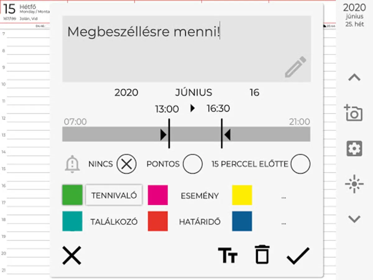 Make notes on your system Kalendapp® határidőnaplódba. Use fields between the signs. Write, skiccelj, take notes!
