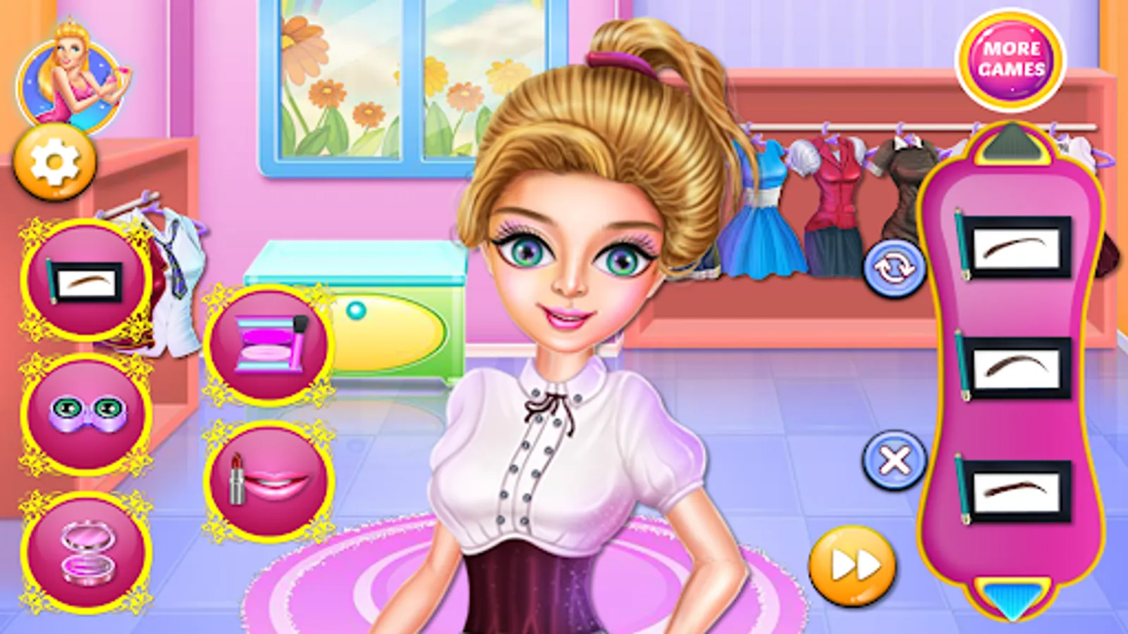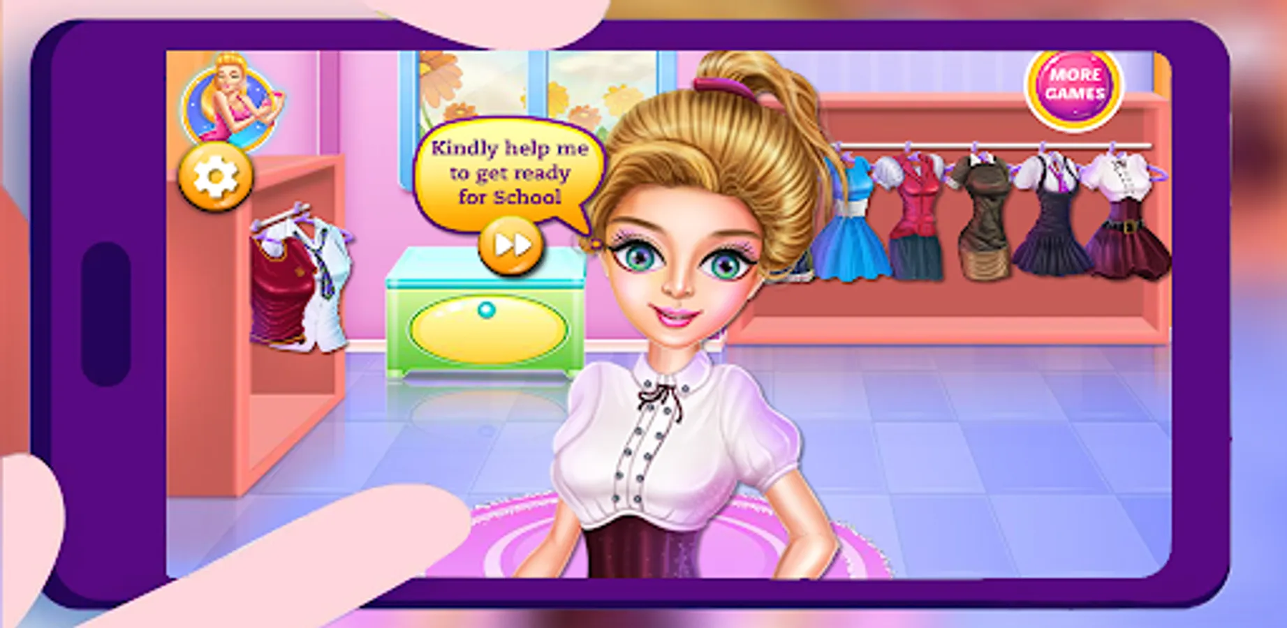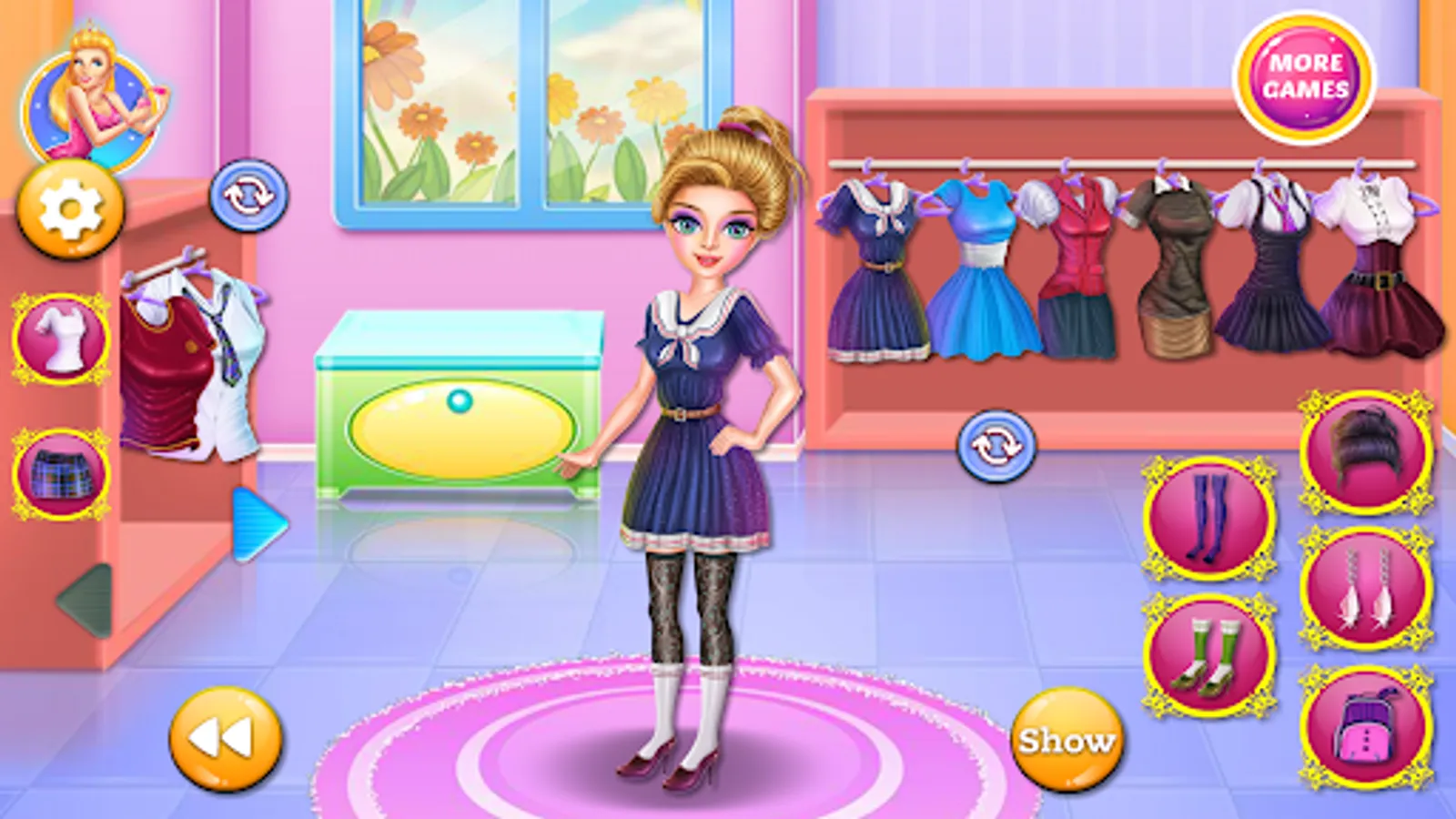 Wake up, put on your makeup and put on a great dress. It's time to open your fashion wardrobe! Dress up the pretty girls one by one as they enter their school for a complete makeover. They need a new dress, better hair and great makeup to study. Can you turn these pretty girls into cute students before class starts?