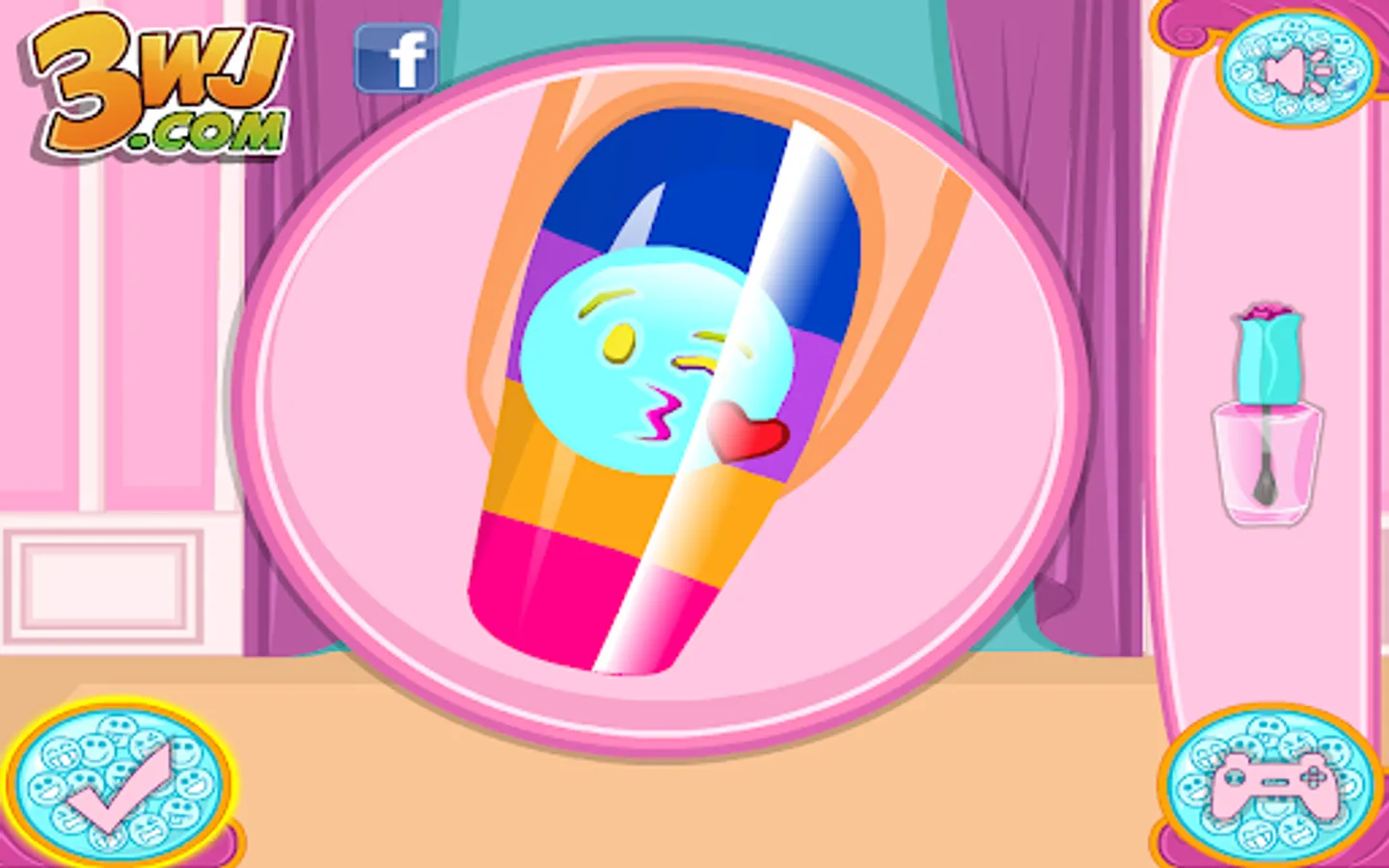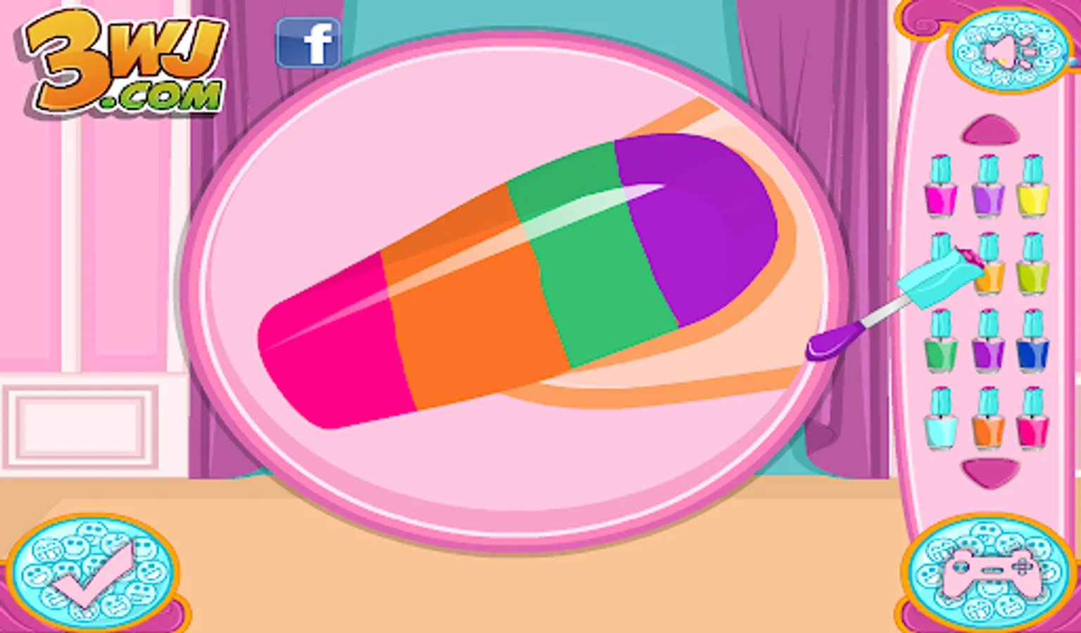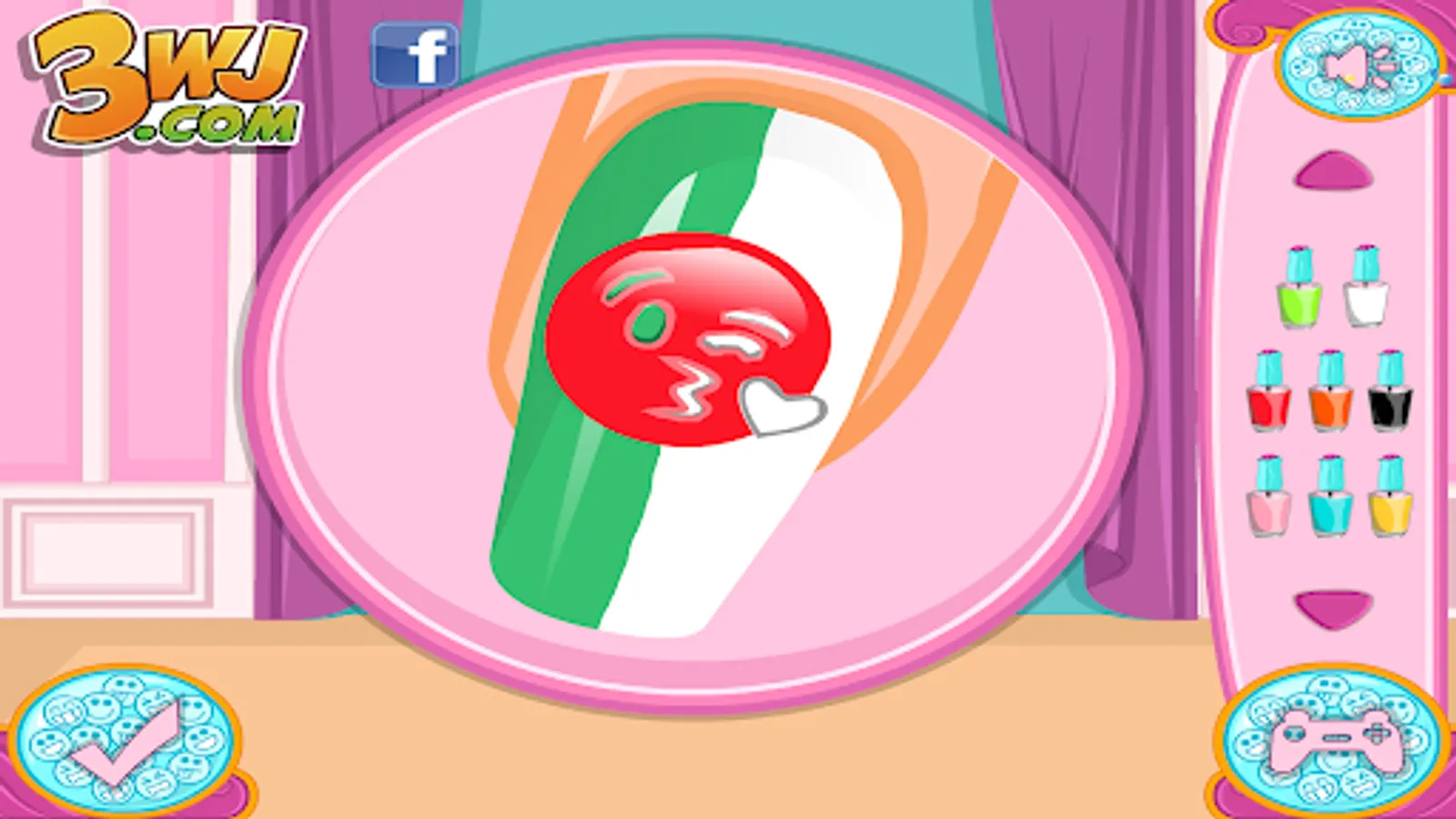We offer 4 different nail styles for you (big, small, medium, and thin). Start designing nails in your normal times now! You can also try special nail challenges! Come on, show your amazing art skills in this nail game for girls.