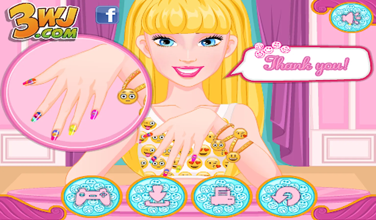 Now in this nail game for girls, you will wash the customer's hands first and rub them until you get rid of all the stains, then in the second step you will choose the shape of the nails that you will cut the nails with, and then you will color the nails in the way you see fit with the customer's hands and add stickers and stickers until it becomes Attractive nail shape