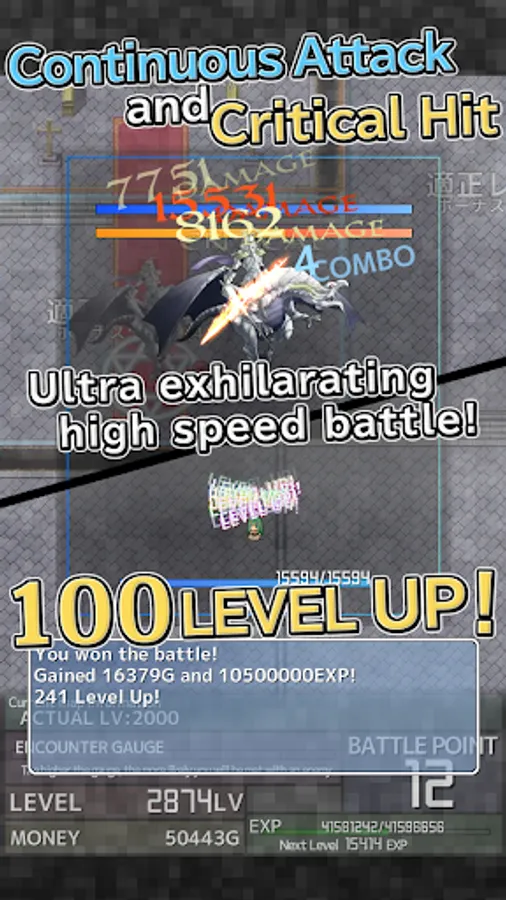 When your levels rise, divide your status up among characters and efficiently defeat the enemies!