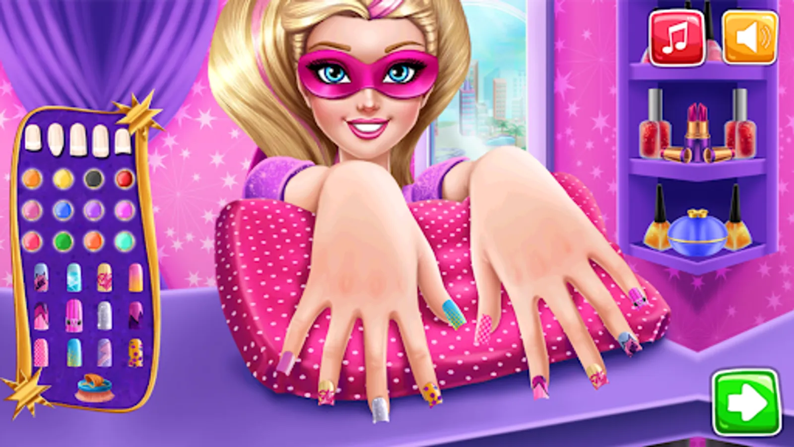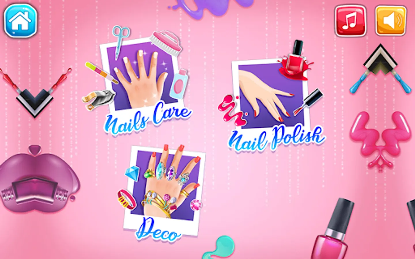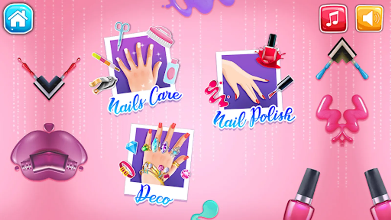 A special polish will be designed on your nails for a charming look. Apply glitter nail polish and nail polish in nail polish salon being the best nail designer. Choose your manicure design according to your dress color and have fun with special nail salon makeup designs. Discover your creativity as a nail artist in nail polish salon - makeup and nail art in nail games and 2D nail art games. Enjoy new game for girls as a manicure expert, nail art design in acrylic nail salon games. Be the best nail artist and paint acrylic nails that best match your makeup and outfit in the salon manicure. Enjoy your nail art game with a new amazing look. Wear charming hand jewelry to get the best nail art look that matches your hands and nails in beauty salon - fashion games specially designed for manicure salon and nail polish games. Nail polish designs from 2D long nails. It is art design, 2D nail art, nail polish salon games.