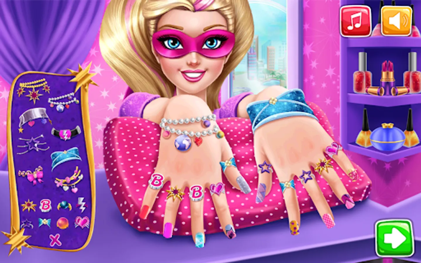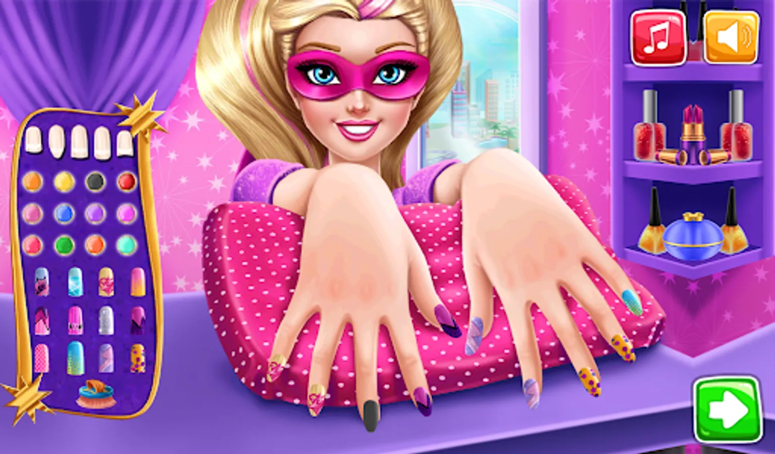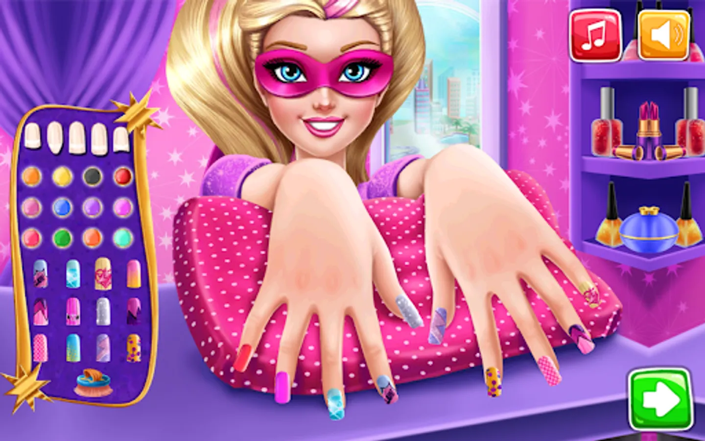 A special polish will be designed on your nails for a charming look. Apply glitter nail polish and nail polish in nail polish salon being the best nail designer. Choose your manicure design according to your dress color and have fun with special nail salon makeup designs. Discover your creativity as a nail artist in nail polish salon - makeup and nail art in nail games and 2D nail art games. Enjoy new game for girls as a manicure expert, nail art design in acrylic nail salon games. Be the best nail artist and paint acrylic nails that best match your makeup and outfit in the salon manicure. Enjoy your nail art game with a new amazing look. Wear charming hand jewelry to get the best nail art look that matches your hands and nails in beauty salon - fashion games specially designed for manicure salon and nail polish games. Nail polish designs from 2D long nails. It is art design, 2D nail art, nail polish salon games.