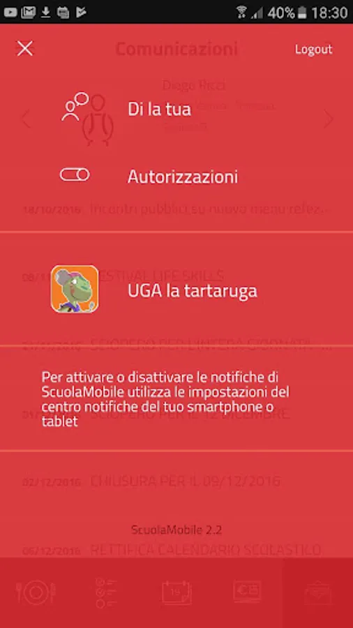 With the app ScuolaMobile, who has children in a preschool, elementary or middle served by the city can receive and give information on all the services provided by the City to the school, such as school lunch, school, pre and post school. For each child services information available assets, the costs and the debt situation in detail. A parent may indicate the absence of the child or the need for a meal in white for a day due to illness.