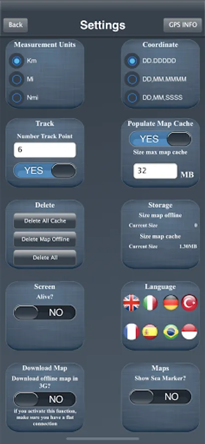 Morse Code in case of danger, Anchor Alert to prevent the drift of the anchor, Moon Phase to show the phases of the moon during the day, Harbors to see the list of ports, Sync Waypoints to be able to create backups and access them from different devices.