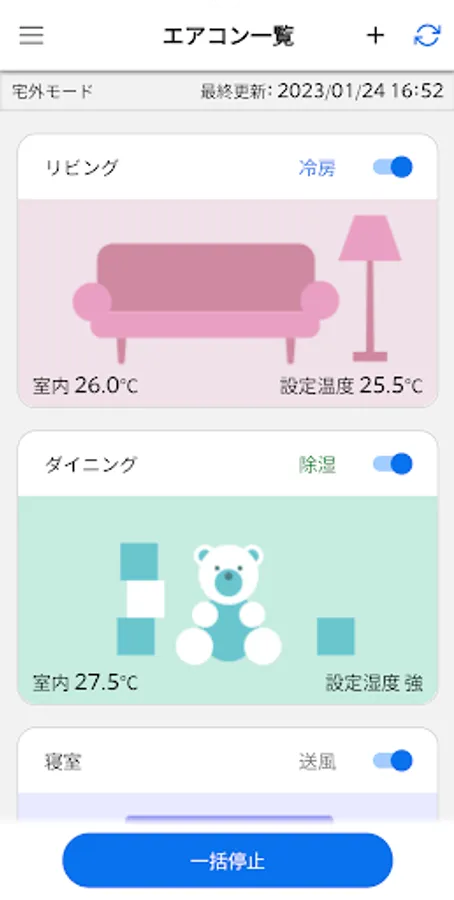 “Kirigamine REMOTE” allows you to use a smartphone to operate an air conditioner from outside the house and check the driving status and electricity bill.