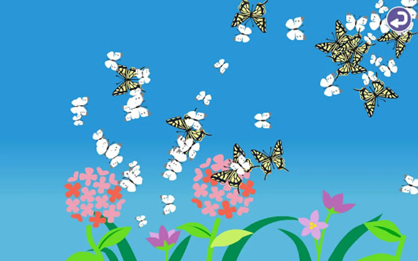 If you touch a flower [one of clustered flowers] a swallowtail will appear,while you touch the background a cabbage white will appear.