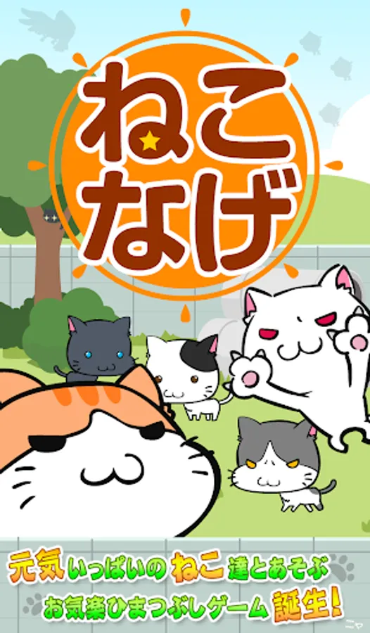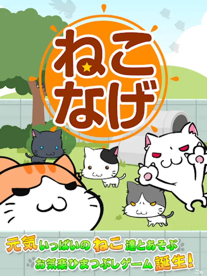 「ねこなげ」は、主人公たち(5匹のねこ)の手が届かない場所にいるテキさんに向けて、ぽぽいっと飛ばしてあげるゲームです。町内のライバルたちを蹴散らして、町内ナンバーワンになれるよう、ねこ達を手伝ってあげてください。