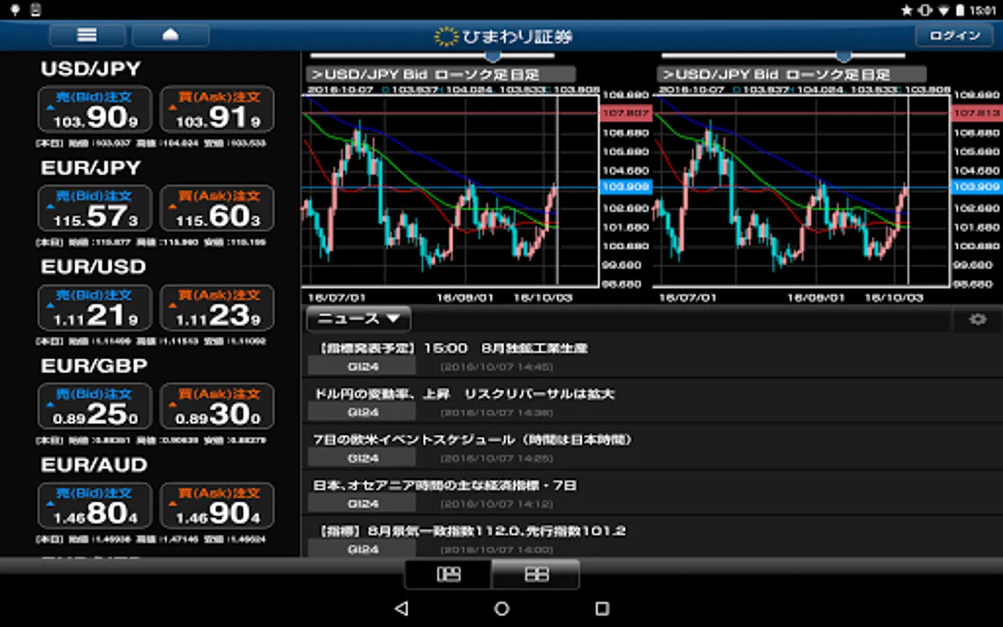 Himawari Securities Co., Ltd. to provide "Sunflower FX for Android tablet" is a "sunflower FX" dedicated trading tools.