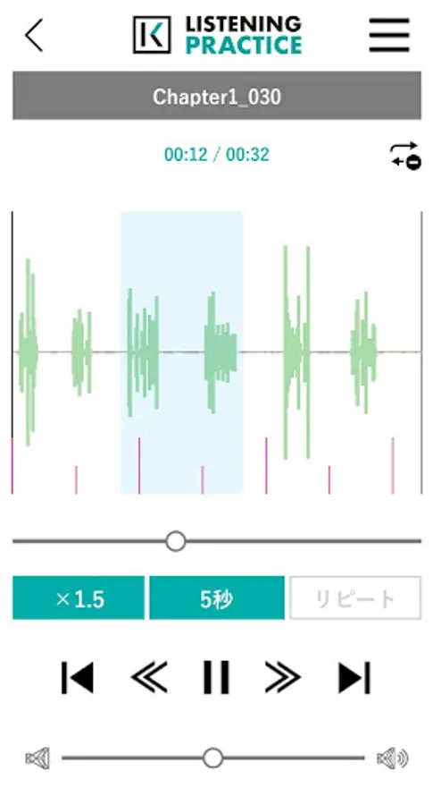 学習に便利なリピート機能や音声スピード変更機能も搭載!