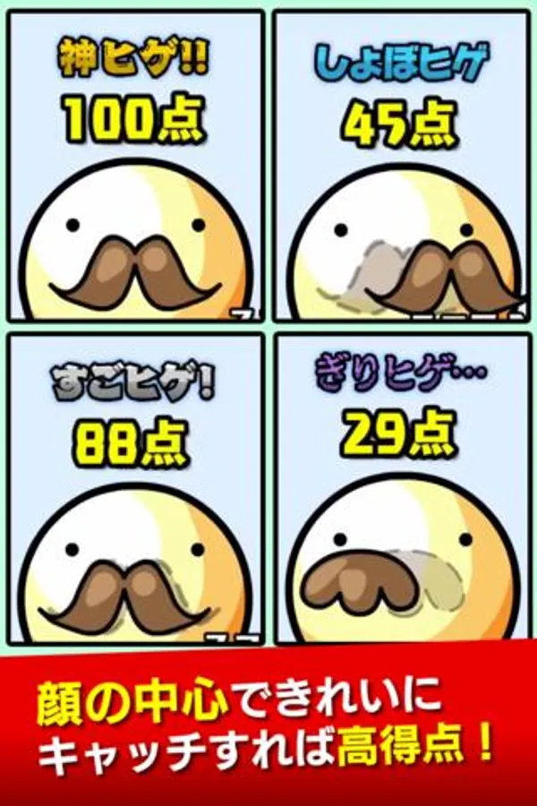 タッチすると顔が移動するから、なるべく顔の中心できれいにキャッチしよう。きれいにキャッチすればするほど高得点になるよ。