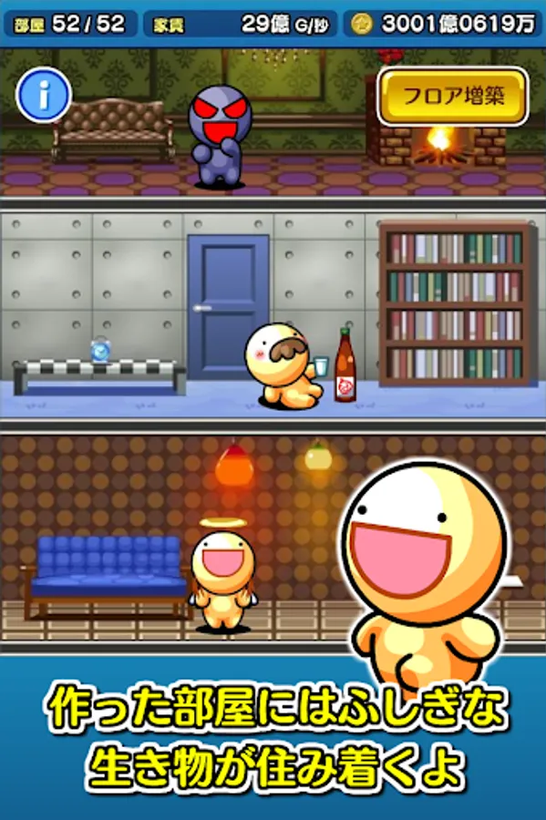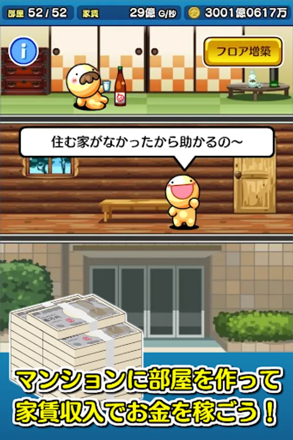This game, you are offer to sell shares of the apartment by force suspicious of self-proclaimed celebrity creature from "jellyfish Funya", had suffered a debt of 100 trillion is the main character. Let's return the debt by the condominium management.
