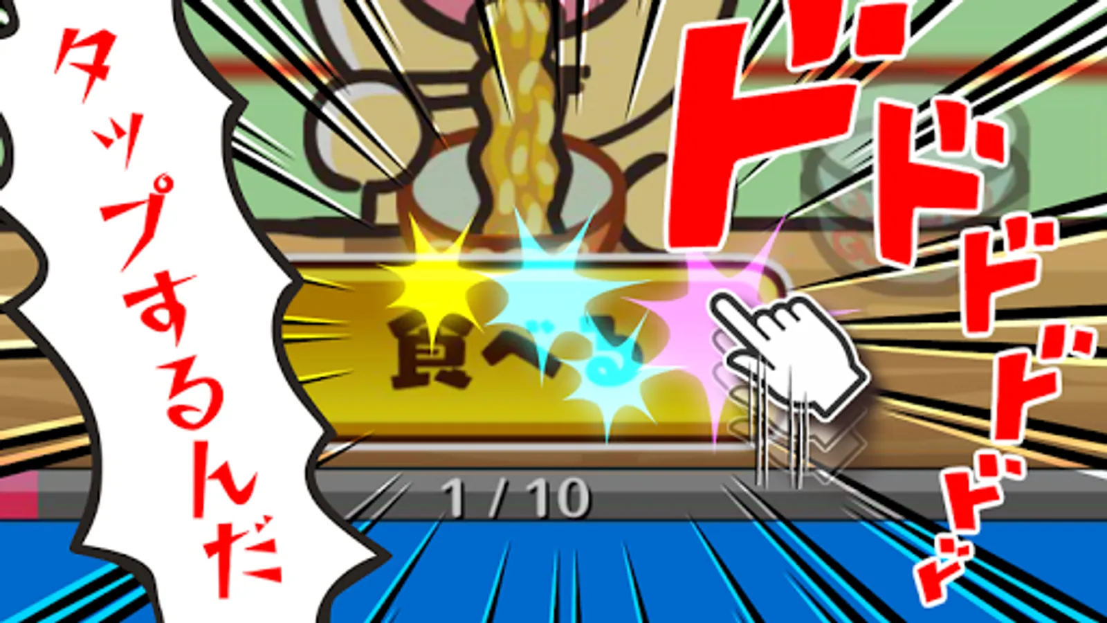 制限時間内にすばやく連打をして、食いしん坊なふしぎな生き物「ふにゃもらけ」にたくさんのラーメンを食べさせよう!