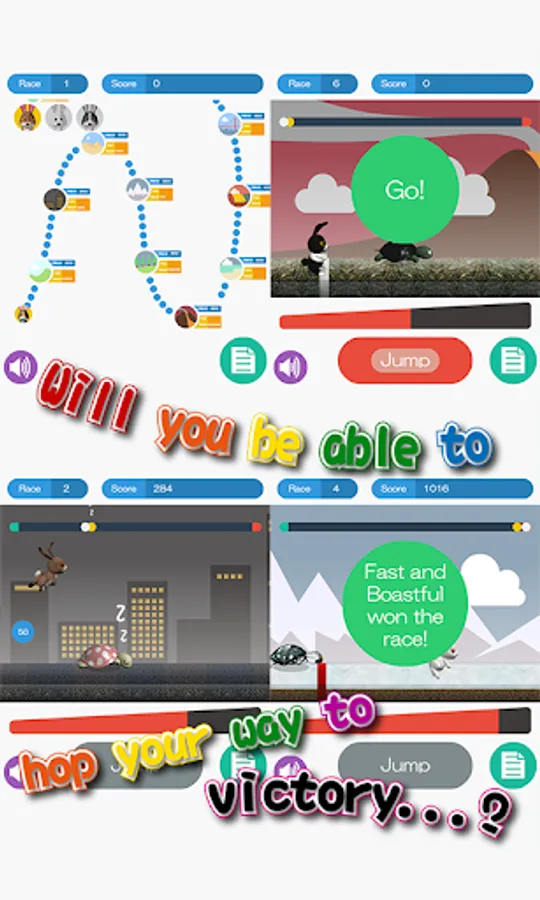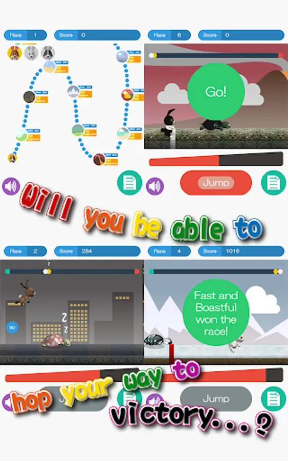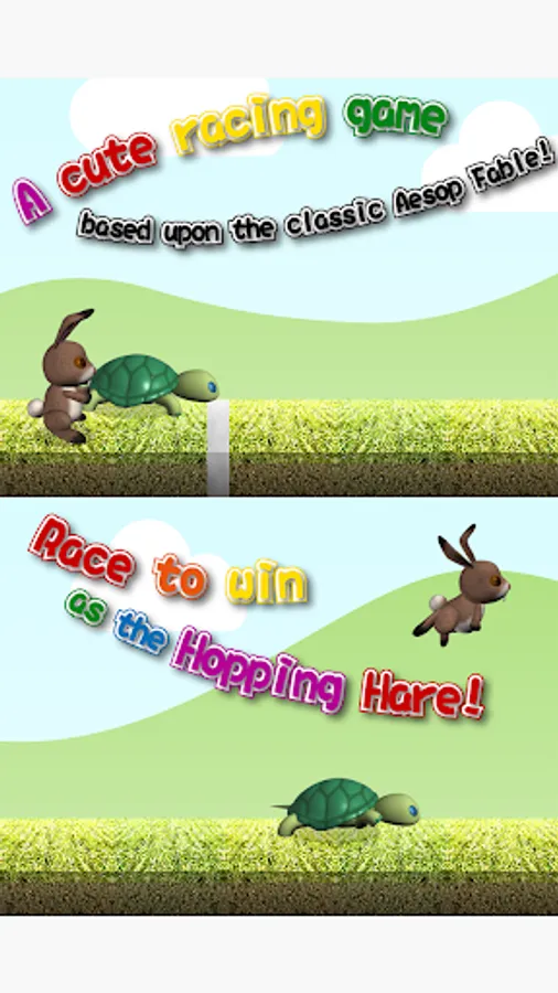 Once upon a time, a boastful hare challenged every tortoise on Earth to a race to the finish. As the Hare, you must hop your way to the finish line before your tortoise rival does! A cutsey racing game loosely based upon the classic "Aesop's Fables" fairy-tale!