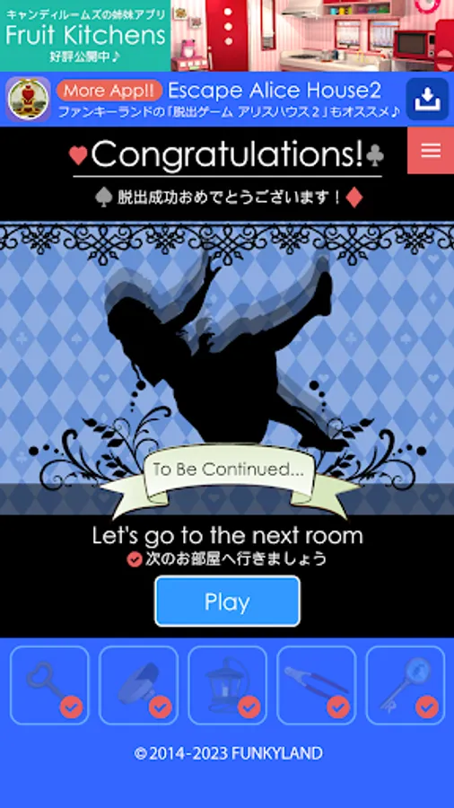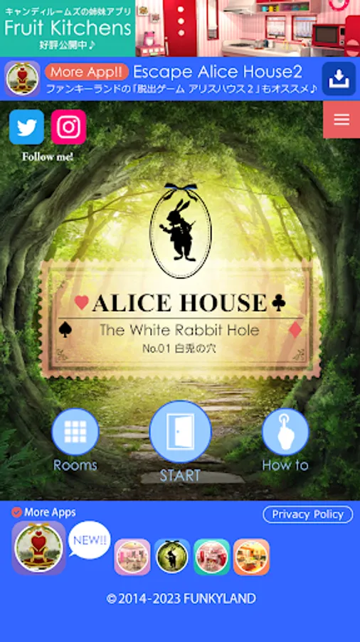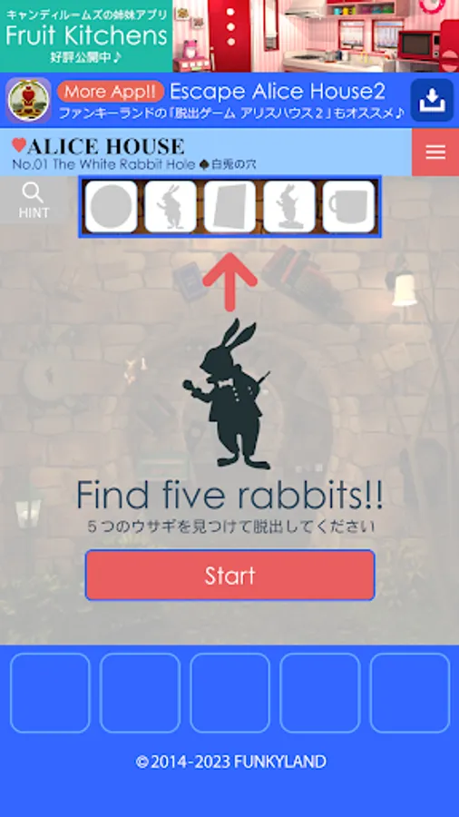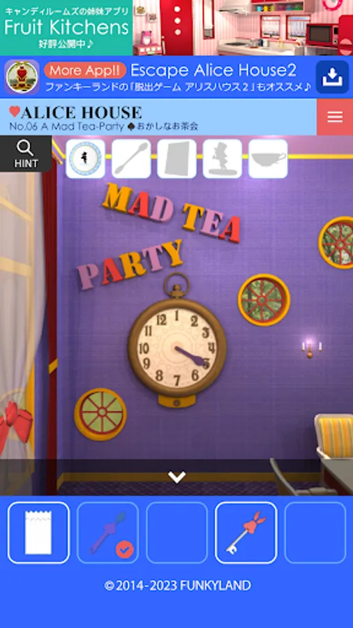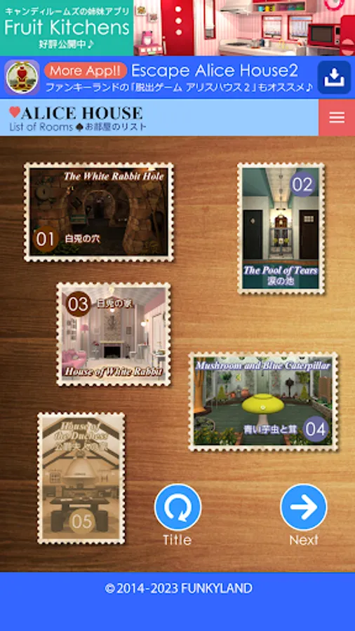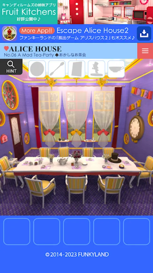 The popular FUNKYLAND game of escaping rooms themed like "Alice's Adventures in Wonderland" by finding characters is now available as an App!
