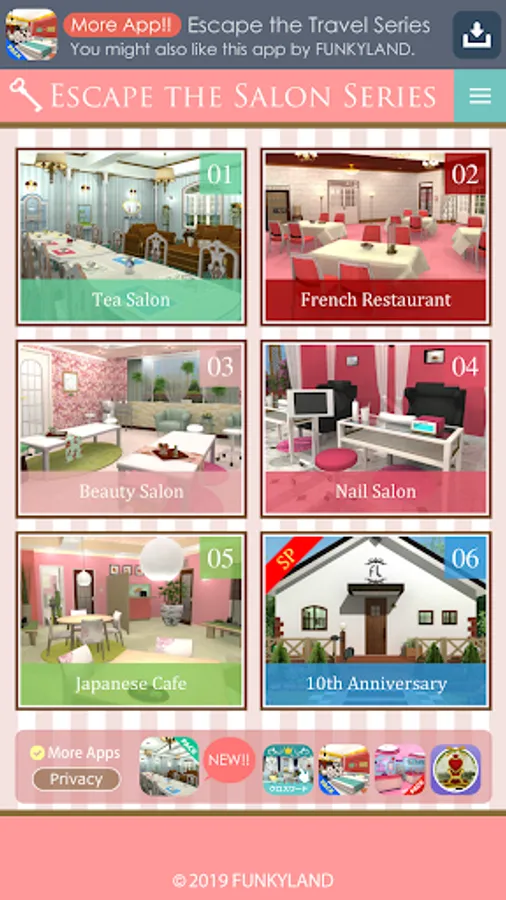 You can choose to play your favorite of 5 beautiful and easy escape games.