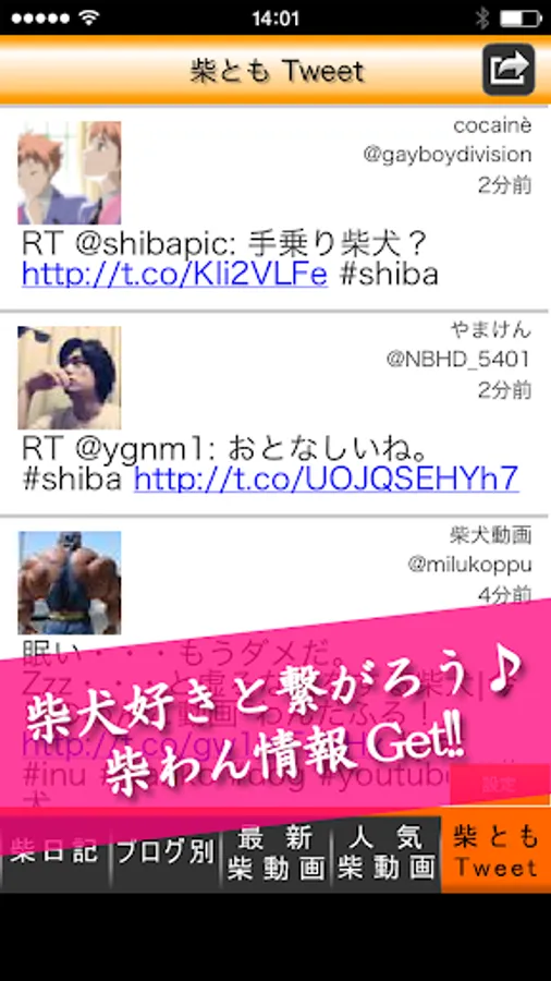 柴犬関連Tweetを楽しめます。柴犬ハッシュタグ入りTweetも可能!