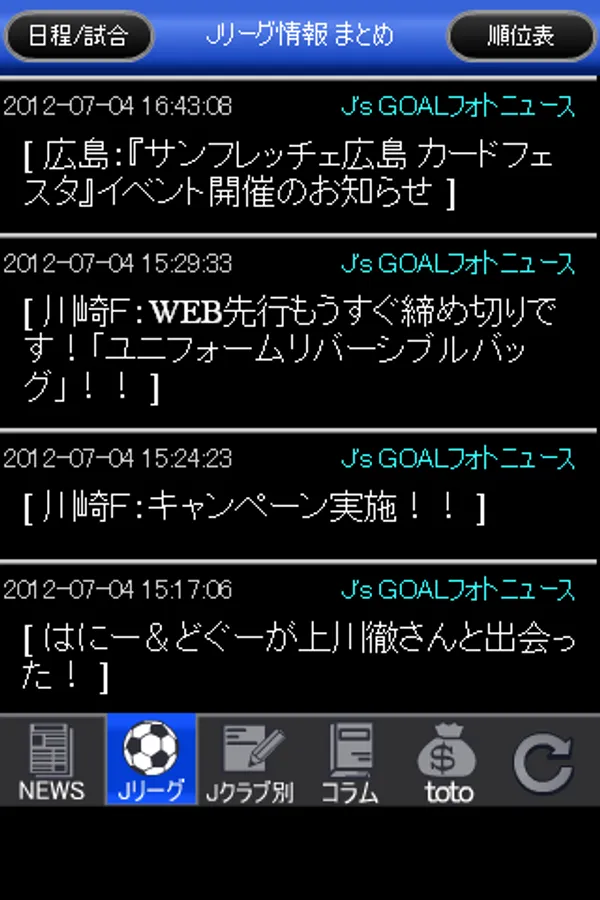 J-League news, breaking news, information, columns, twitter information by club team, together with toto forecast column, toto official information, etc. You can browse various information and data of J League, toto forecast and purchase information with this one application.
