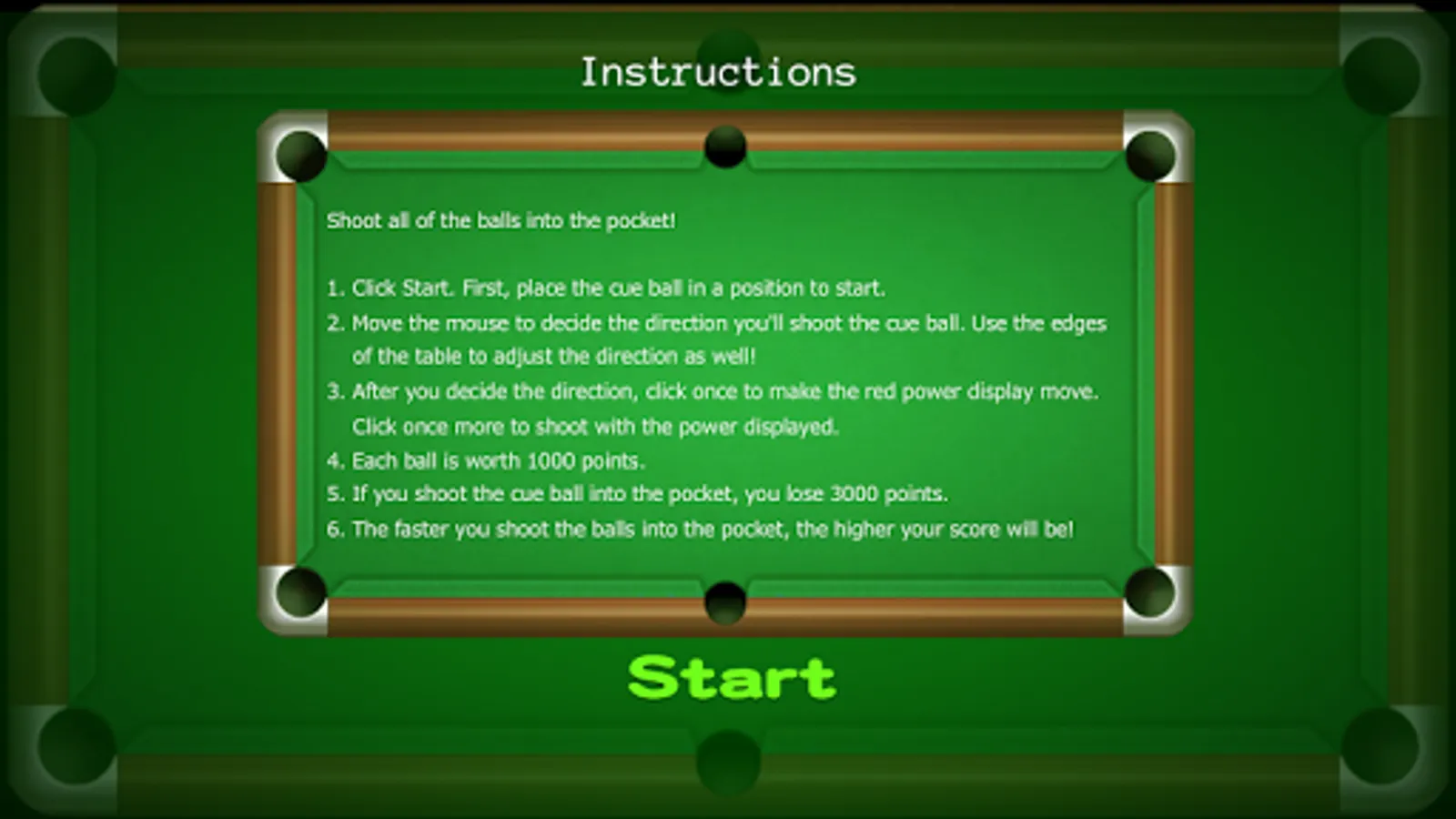 5. If you shoot the cue ball into the pocket, you lose 3000 points.