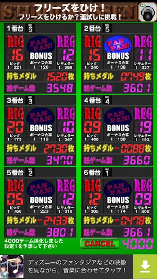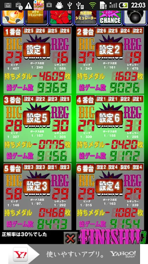 それぞれのゲーム数になったら設定1から6までをデーターをタップして順番に推測して下さい。