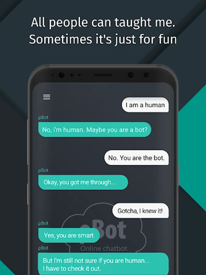 This version roBot for Android with preinstalled knowledge base that is used as an online version of chatbot. Chatbot roBot - a unique bot, since learning is allowed for everybody. But the knowledge base is moderated. In case of uncensored language, senseless answers, insults, advertising, etc., the authors of these answers will be blocked, and their names removed from the table of authors.