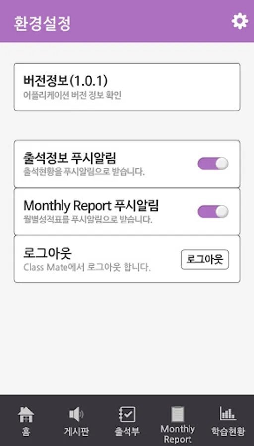 입니다. 자녀의 출결정보와 학습현황을 푸시 알림 기능으로 편리하게 확인 가능합니다.