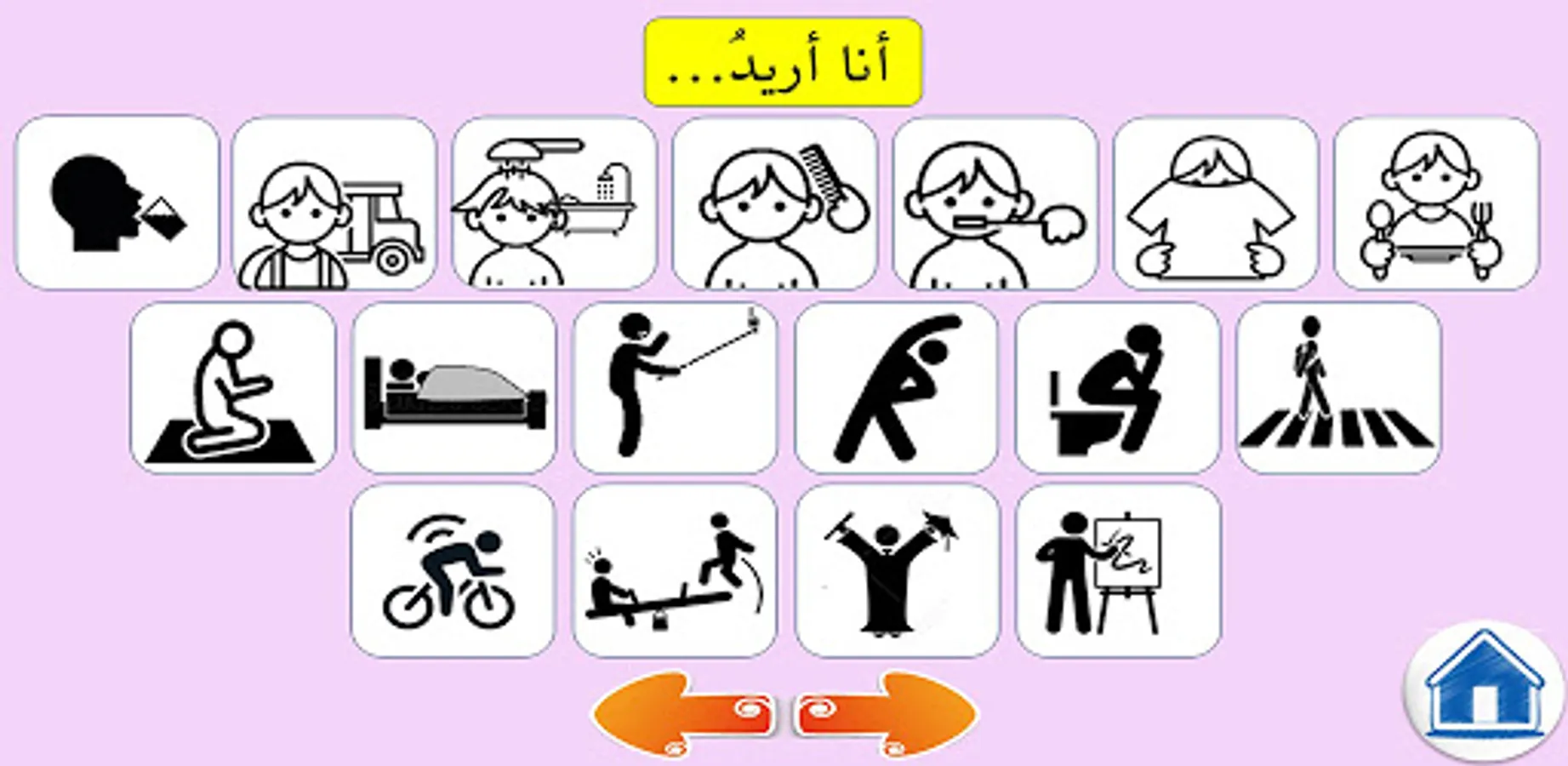 An educational application directed primarily to children with autism and others with a disability, based on the method of cards, sound and repetition in the learning of autistic children. And it helps them learn and pronounce the Arabic letters, and it also allows them to enrich their linguistic balance through sound and pictures, as the child learns through it the colors, numbers, shapes, animals, clothes, the human body and many things. It also helps them express their feelings and desires.