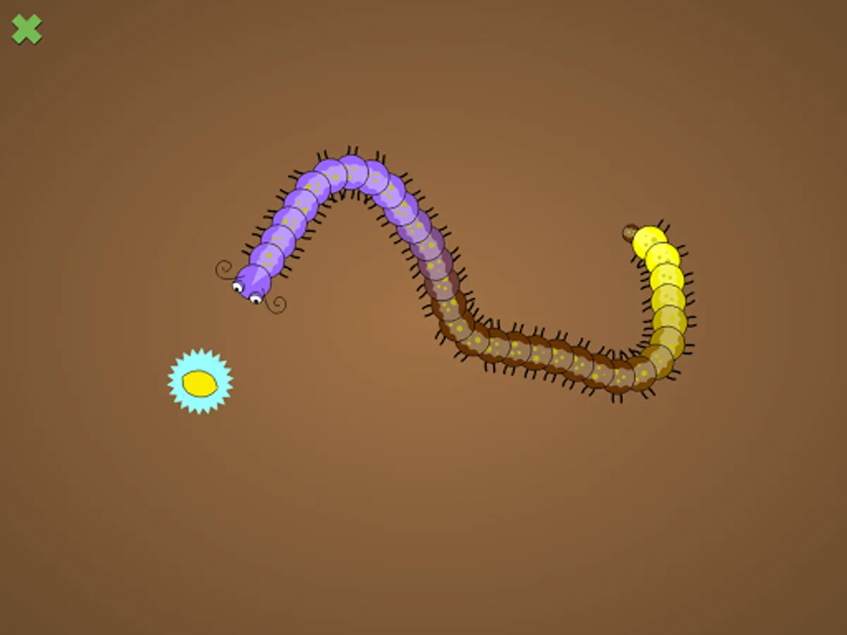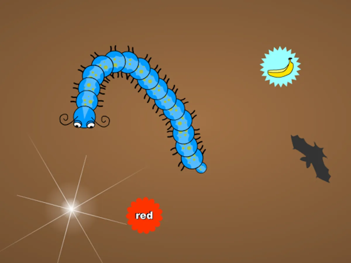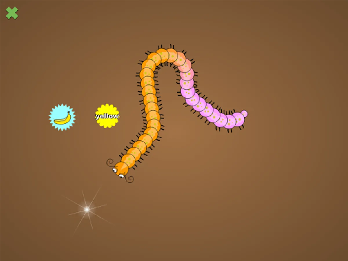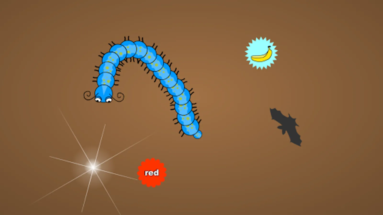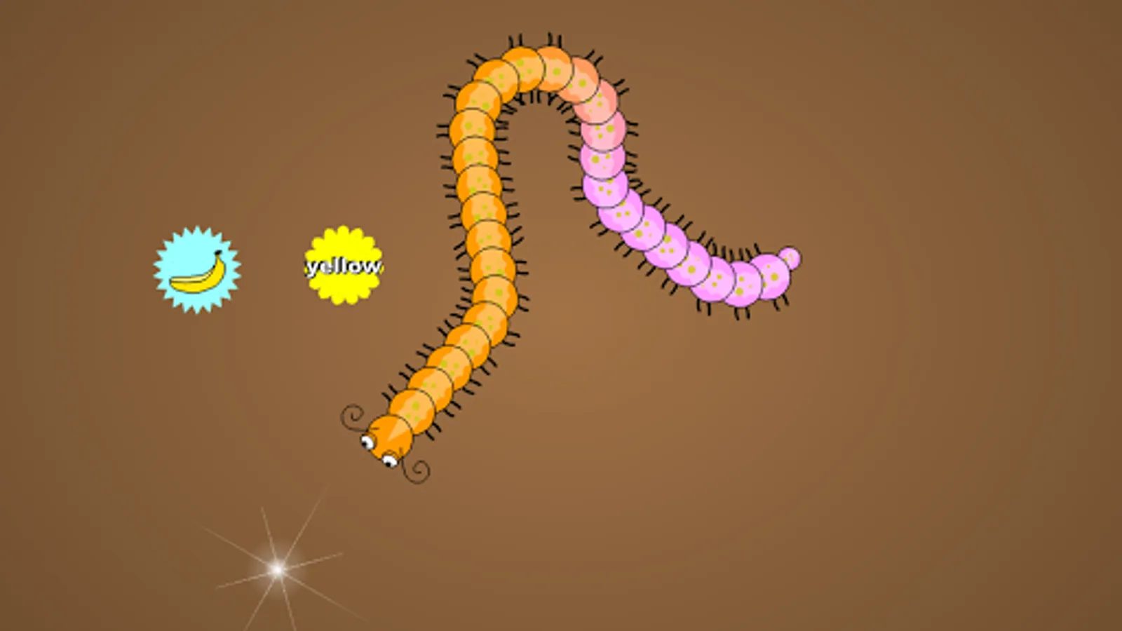 The worm is very hungry and grows each time it eats a fruit. It is as greedy as many other caterpillars, maggots and bugs. It gets bigger and bigger as your child learns to recognise fruits and colors. The caterpillar changes its look when it finds badges with colors.