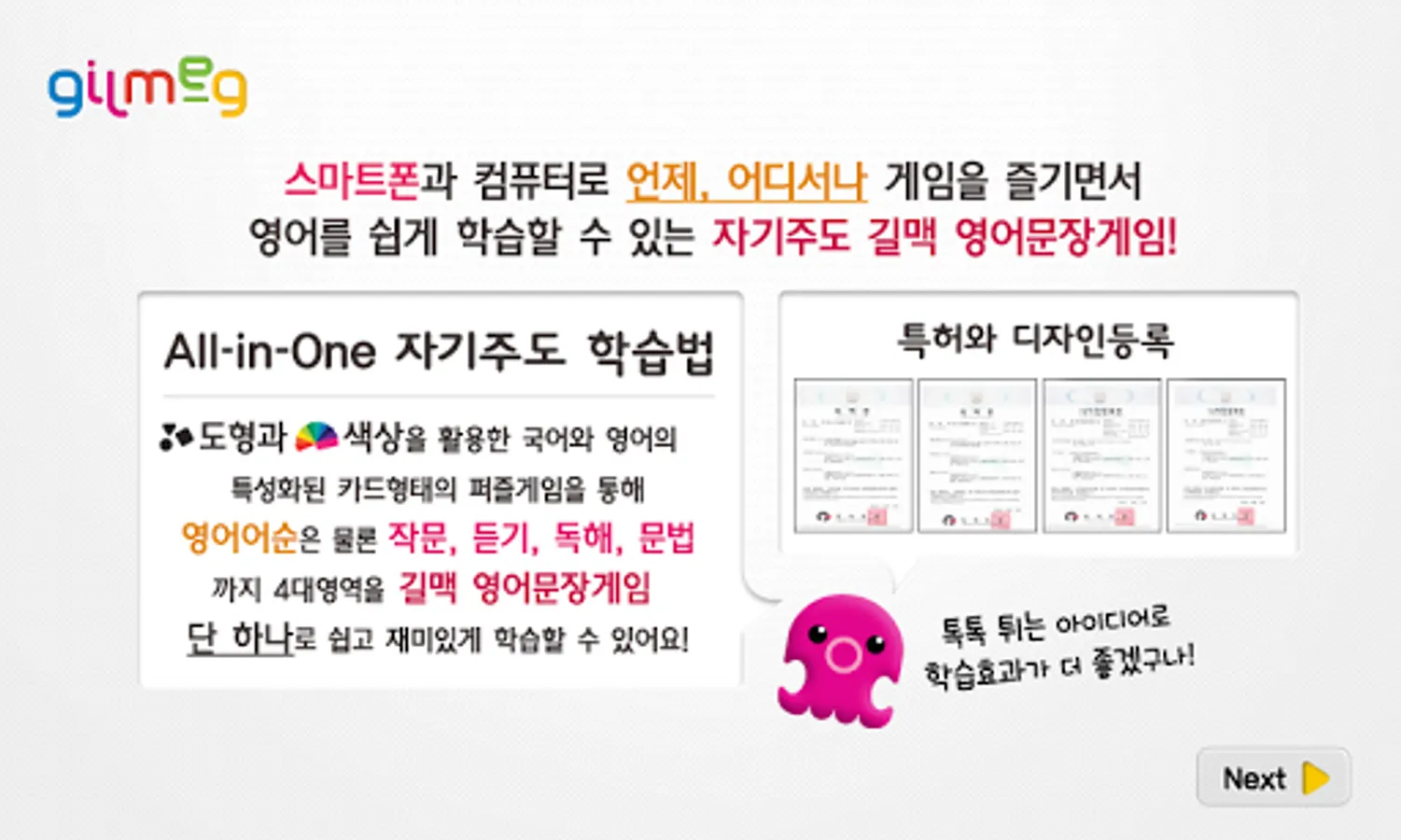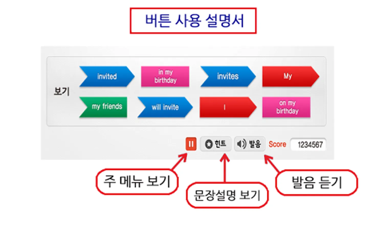 4) 동일한 문장을 자신의 수준에 맞추어 레벨을 선택하여 반복적으로 학습할 수 있어 영어어순은 물론 작문, 회화, 번역, 독해까지 이 게임 하나로 효과적으로 학습할 수 있는 All-in-One 자기주도 학습법이다.