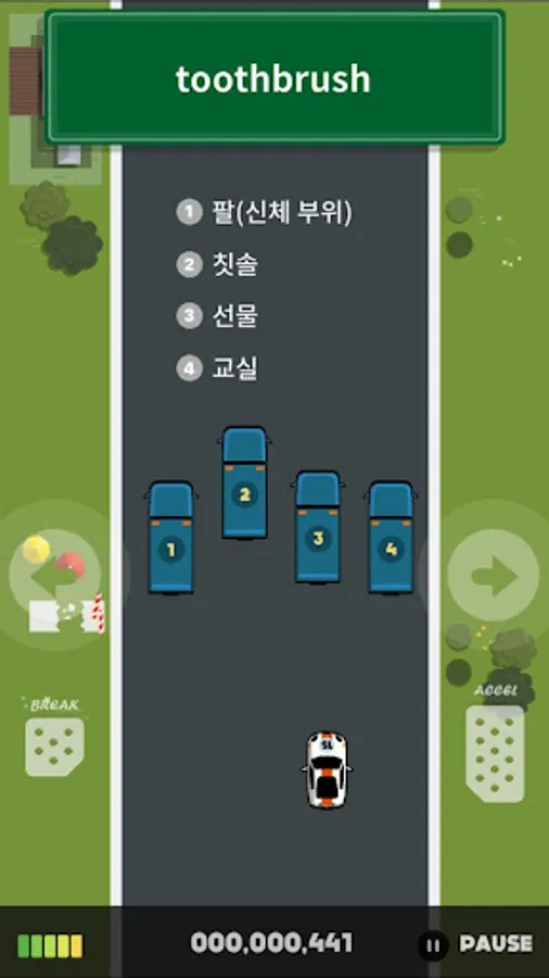 Forget minat Racing is a game while riding a car avoiding various obstacles to clear the stage. You must know a lot of words to get more points, so please forget the pre-practice minat ~ ^^