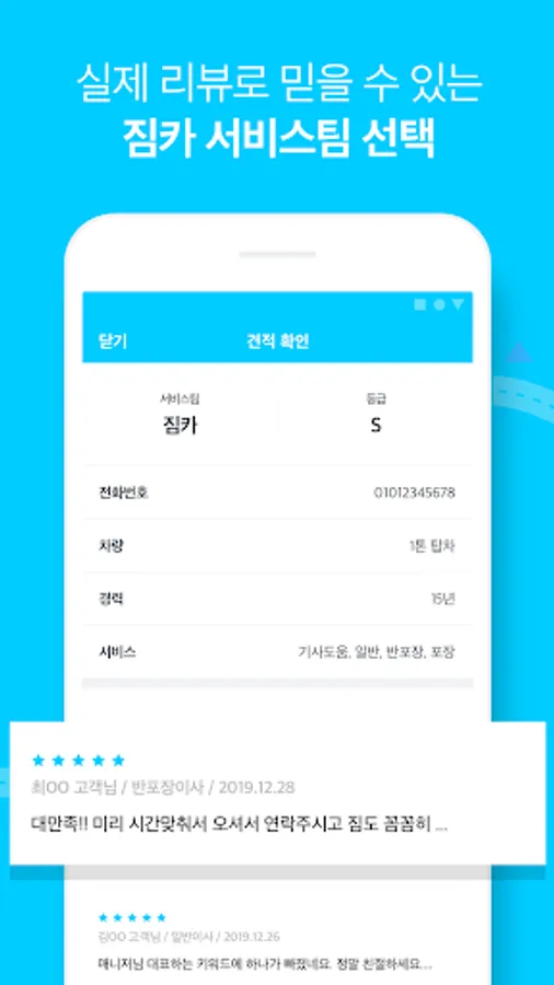 The rating of the moving team is determined by the data evaluated by the actual users.
