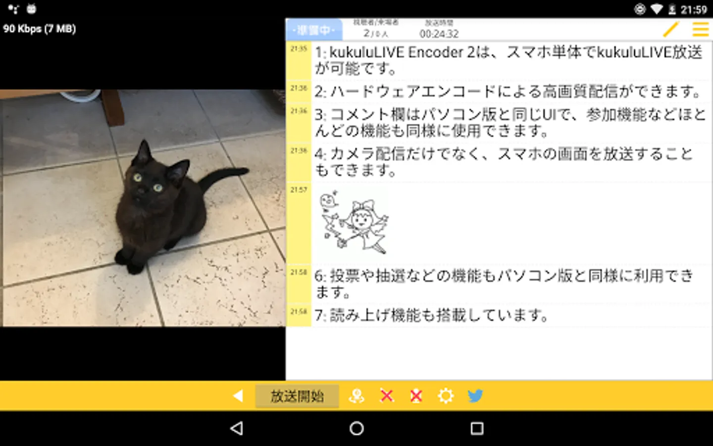 "KukuluLIVE Encoder" is an application that can be distributed from smartphones and tablets with the free distribution site kukuluLIVE.