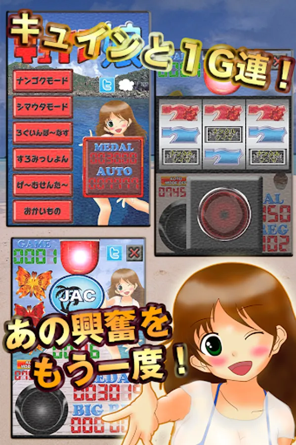 リールのないスロアプリシリーズ、今度は懐かしの1G連ストック沖スロアプリ!!