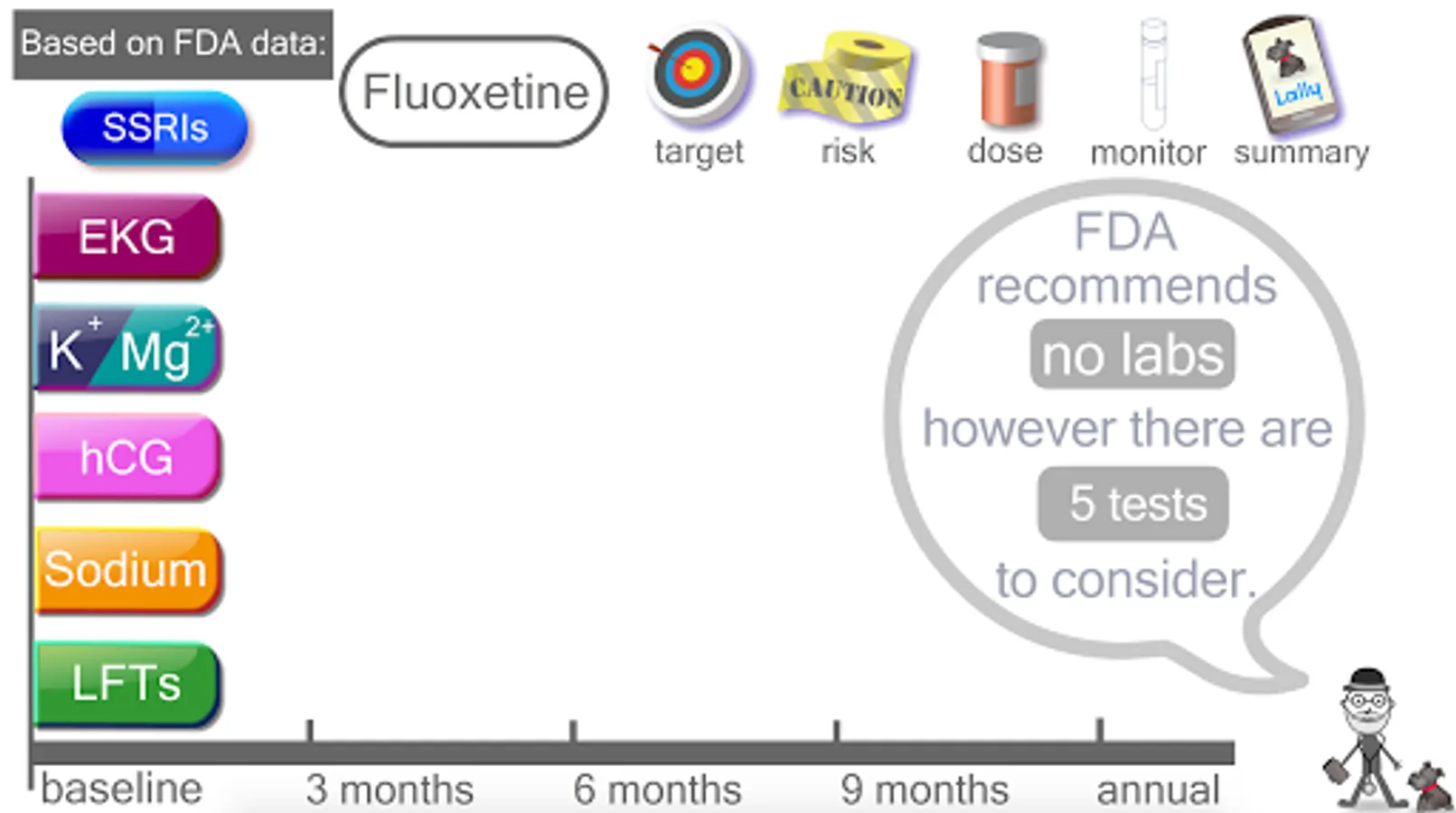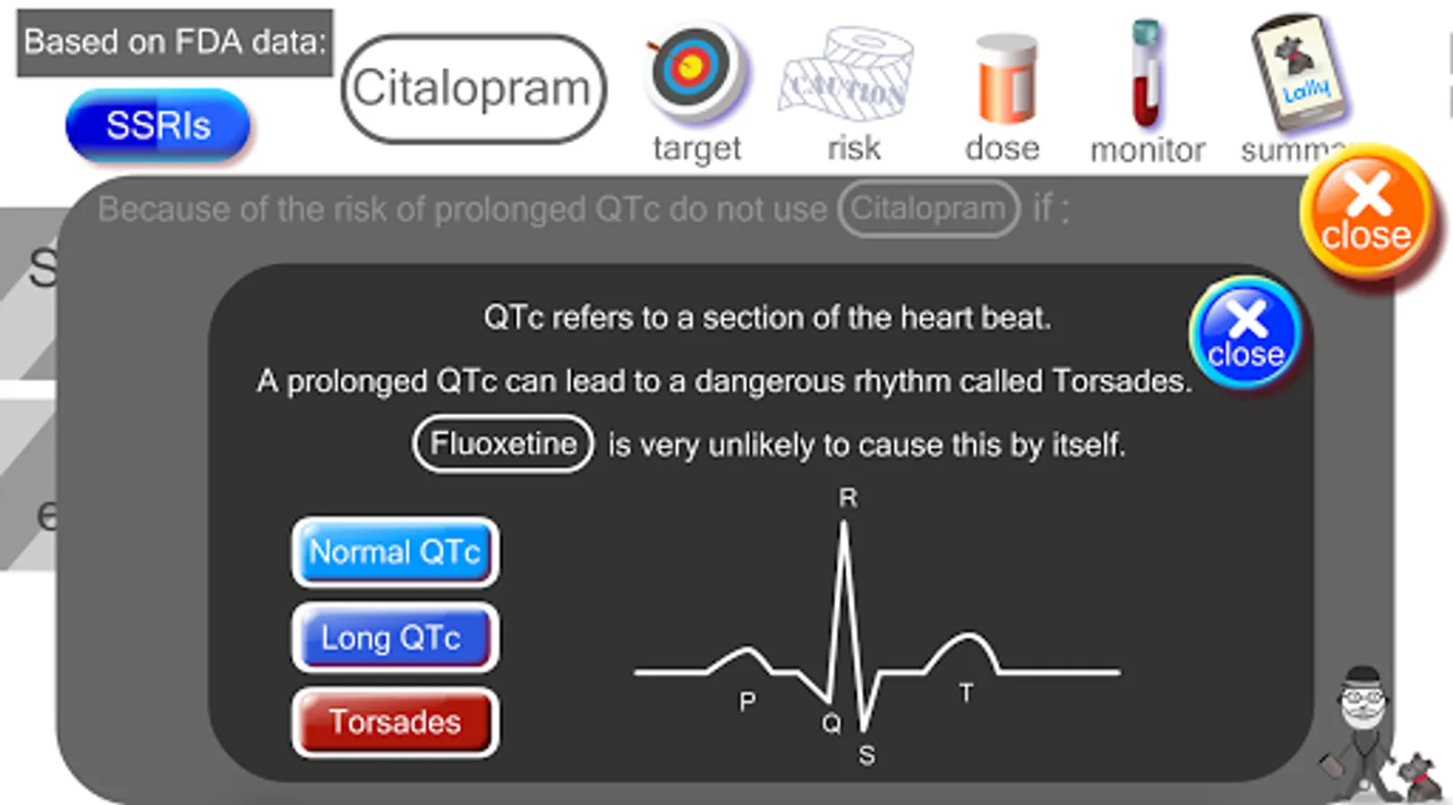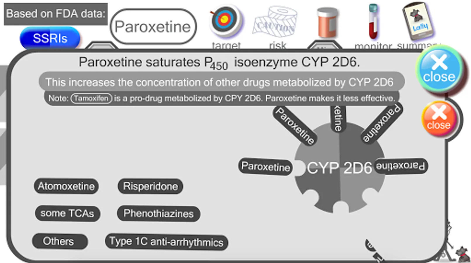 I am board-certified psychiatrist. I have taken the FDA guidelines on SSRI use and created this easy-to-use, animated, touch-screen reference. I don't think there is any other clinical reference that is quicker or easier to use. I hope you find the mix of DATA and DESIGN to be helpful in your practice or studies.