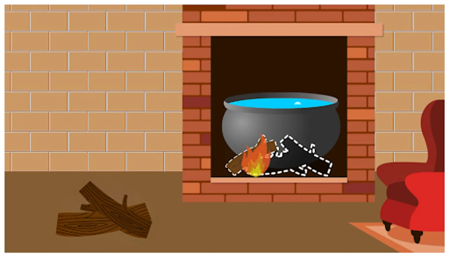 -Help the wolf down the chimney and then drop it into the cauldron of boiling water!