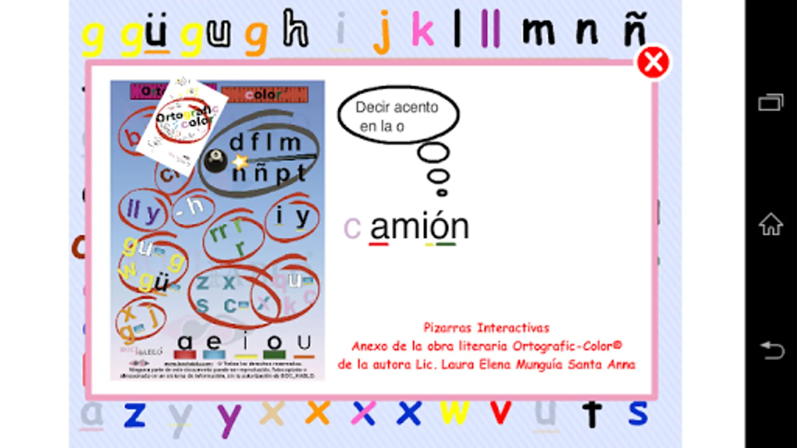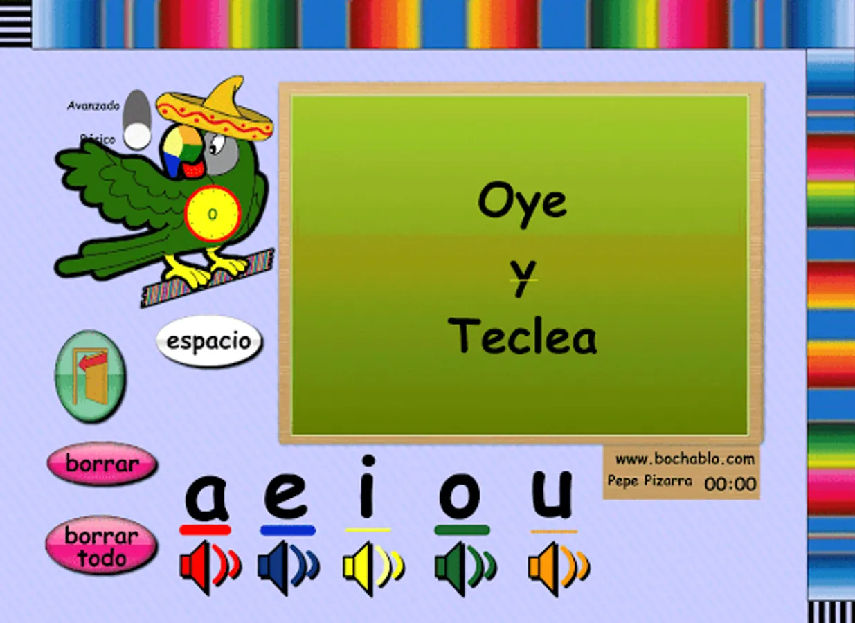 Around the board you will see in alphabetical order all the letters, leaving blocked the vocal and / and / it sounds like (i). The latter will appear in the bottom one after the other on a cornetitas with the same colors peak Pepe as they show us the place of the tongue to pronounce them. The bird can only utter: a, e, i, y, o, u.