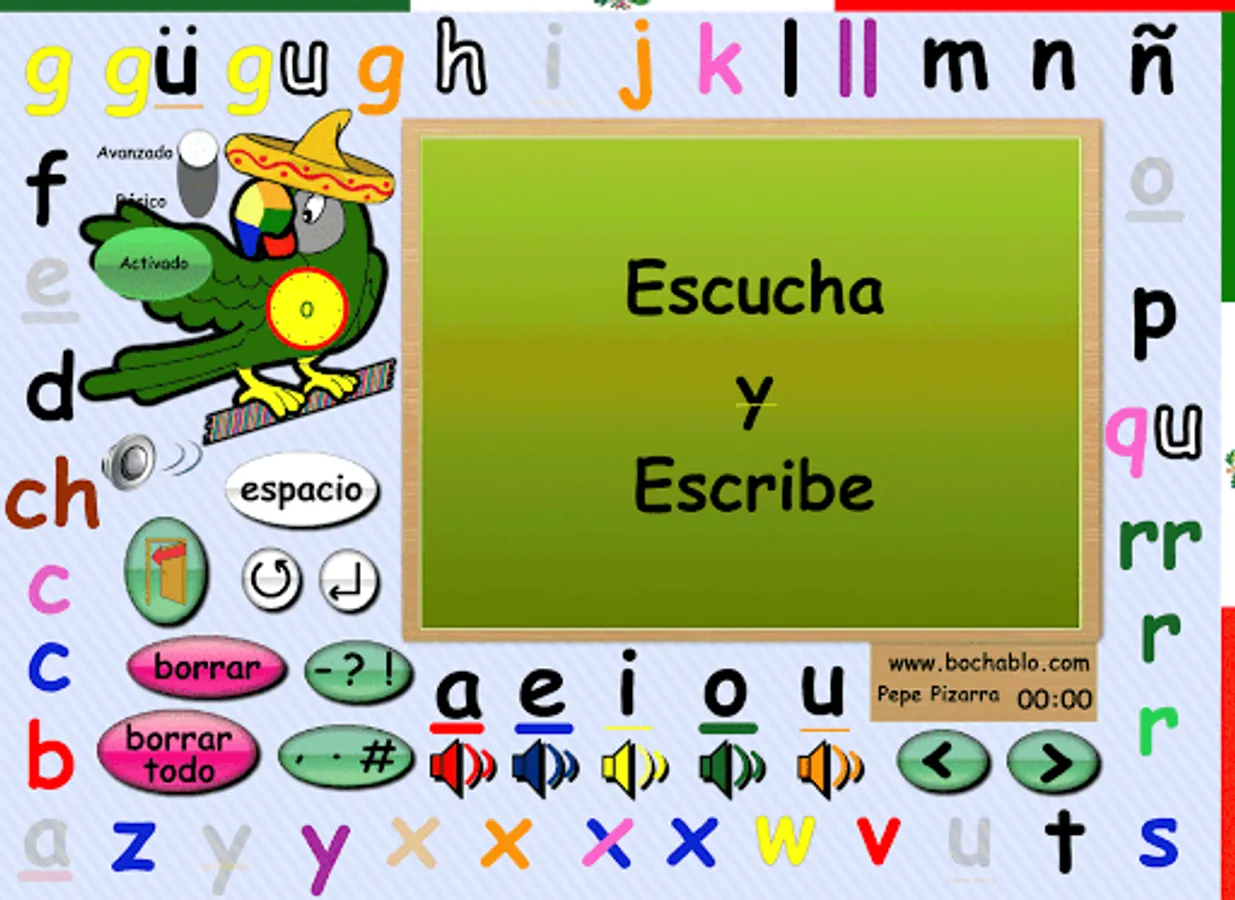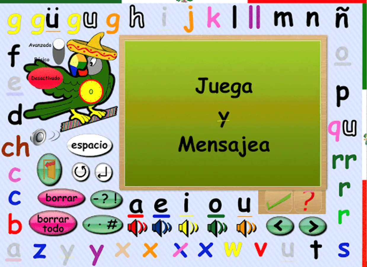 Around the board you will see in alphabetical order all the letters, leaving blocked the vocal and / and / it sounds like (i). The latter will appear in the bottom one after the other on a cornetitas with the same colors peak Pepe as they show us the place of the tongue to pronounce them. The bird can only utter: a, e, i, y, o, u.