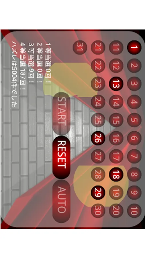 Please choose six numbers in the tap. Please try the RESET button when you accidentally pick many.