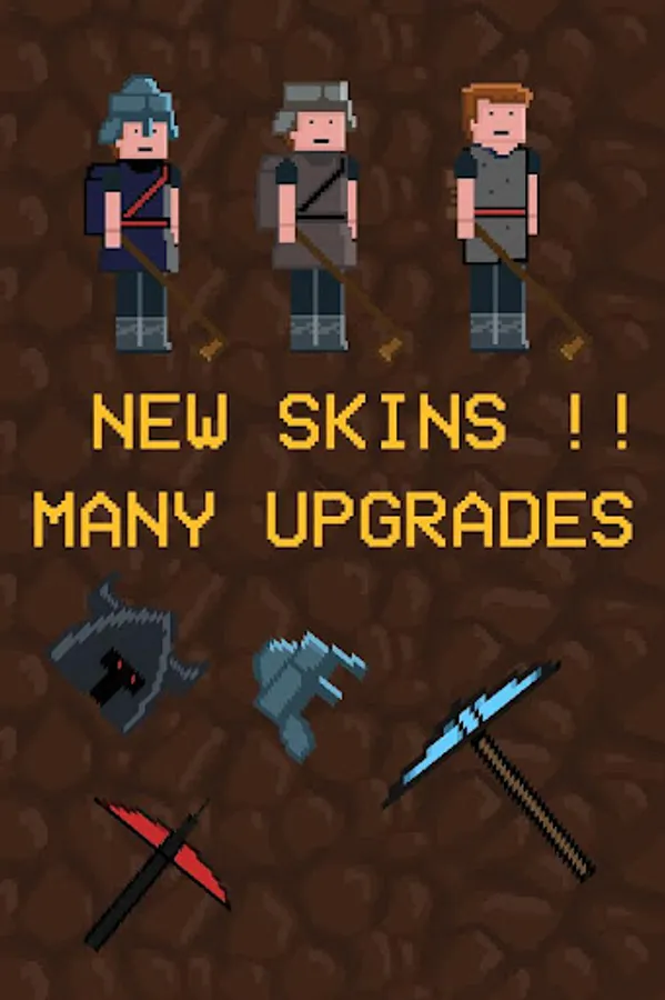Tap Miner is small mining game. You can dig blocks and get gold or gems. Spend money to upgrade your skins and tools. Beat underground monsters. It's funny and attractive game to spend your time. Through collections you can create tools and shields.