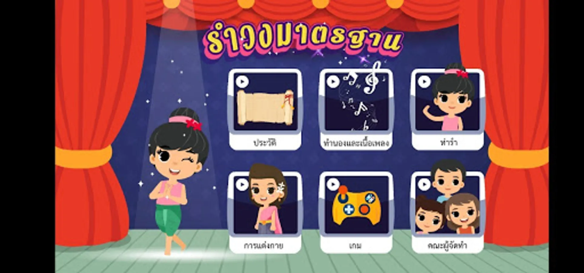 This application is created to provide knowledge about the history, melody, lyrics, dance of 3 standard dances, namely Ngam Saeng Duan, Thai songs and Simaran dances. 4 styles of dress up with simple fun games for students to practice memory.