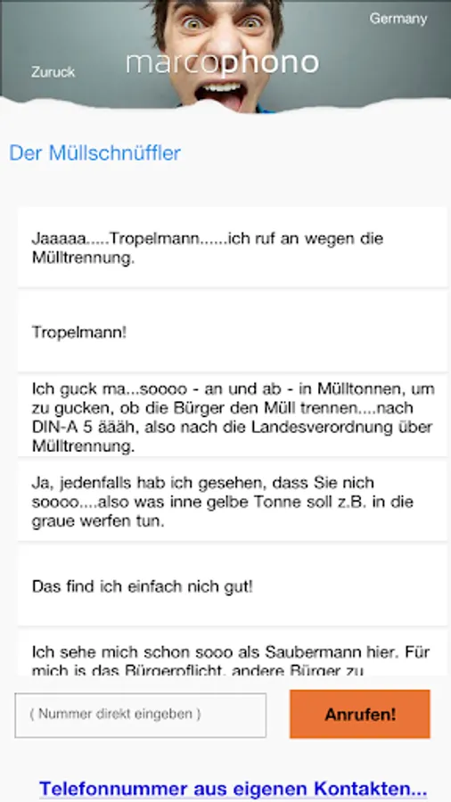 "Marcophono is an ingenious phone prank app. Marcophono has achieved legendary status as a free prank app. Now the funny tool is also available as an app. April fools every day!"