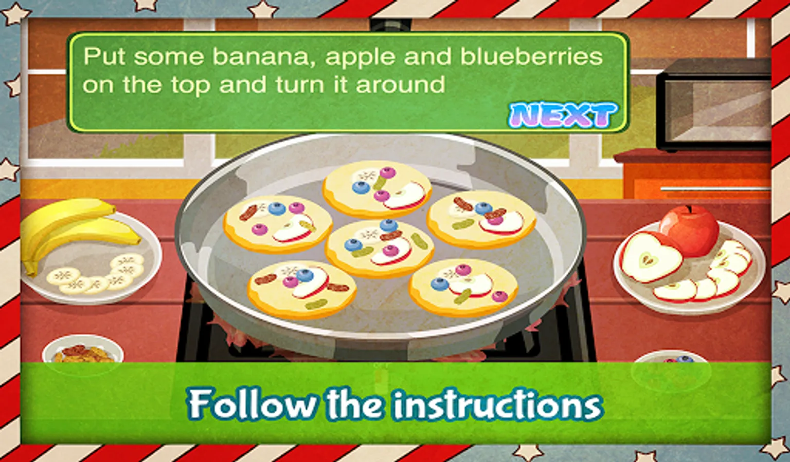 Do you fancy pancakes, too? Then get started with this cooking game and learn how to prepare American pancakes! Check which ingredients you need for the batter and watch out that the fire's not too high, otherwise your pancakes might burn. Once you've played this cooking game, you can try out the recipe for real in your own kitchen. Have fun!