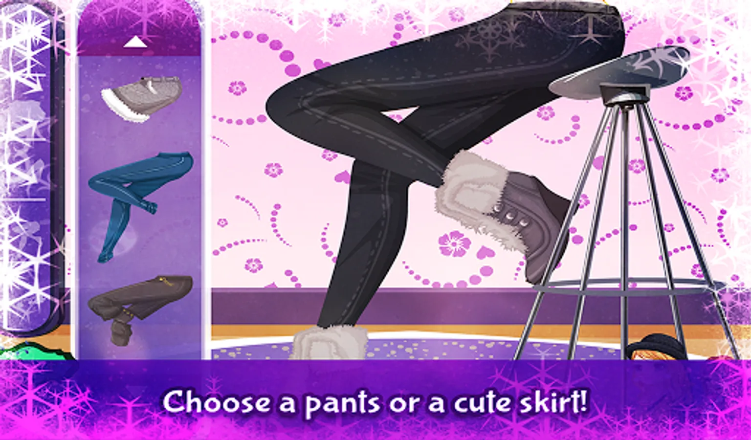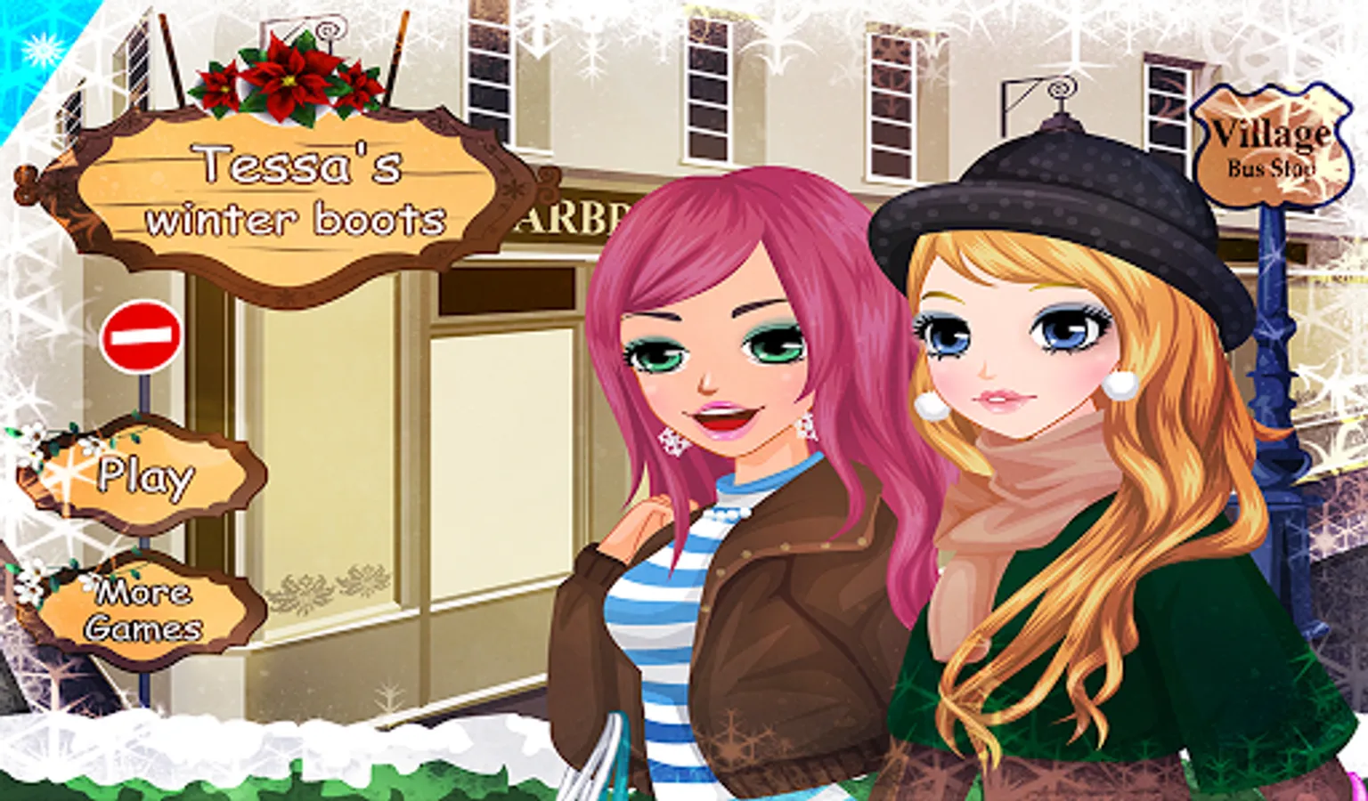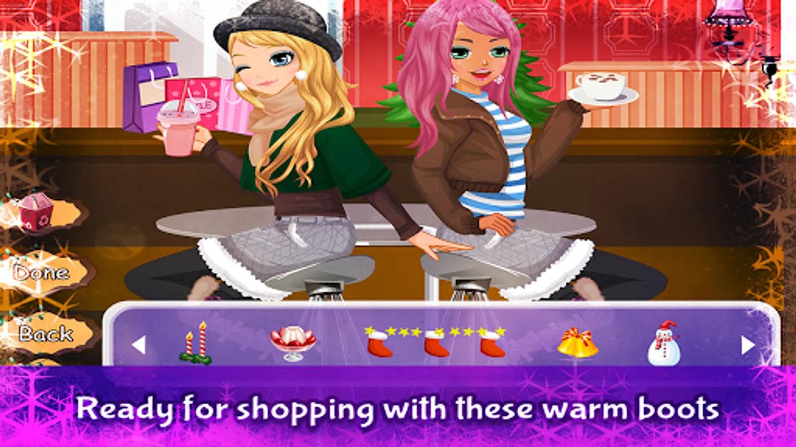 This is a part of the Tessa series. Tessa is going to town with her friend Eva, for some shopping. It's snowing, so they want to buy beautiful and warm boots to keep their feet warm. Can you help them find the most gorgeous boots? After a lot of shopping, Tessa and Eva would like to go to have a drink. I think they'd like to order a hot chocolate. Could you prepare this for them?