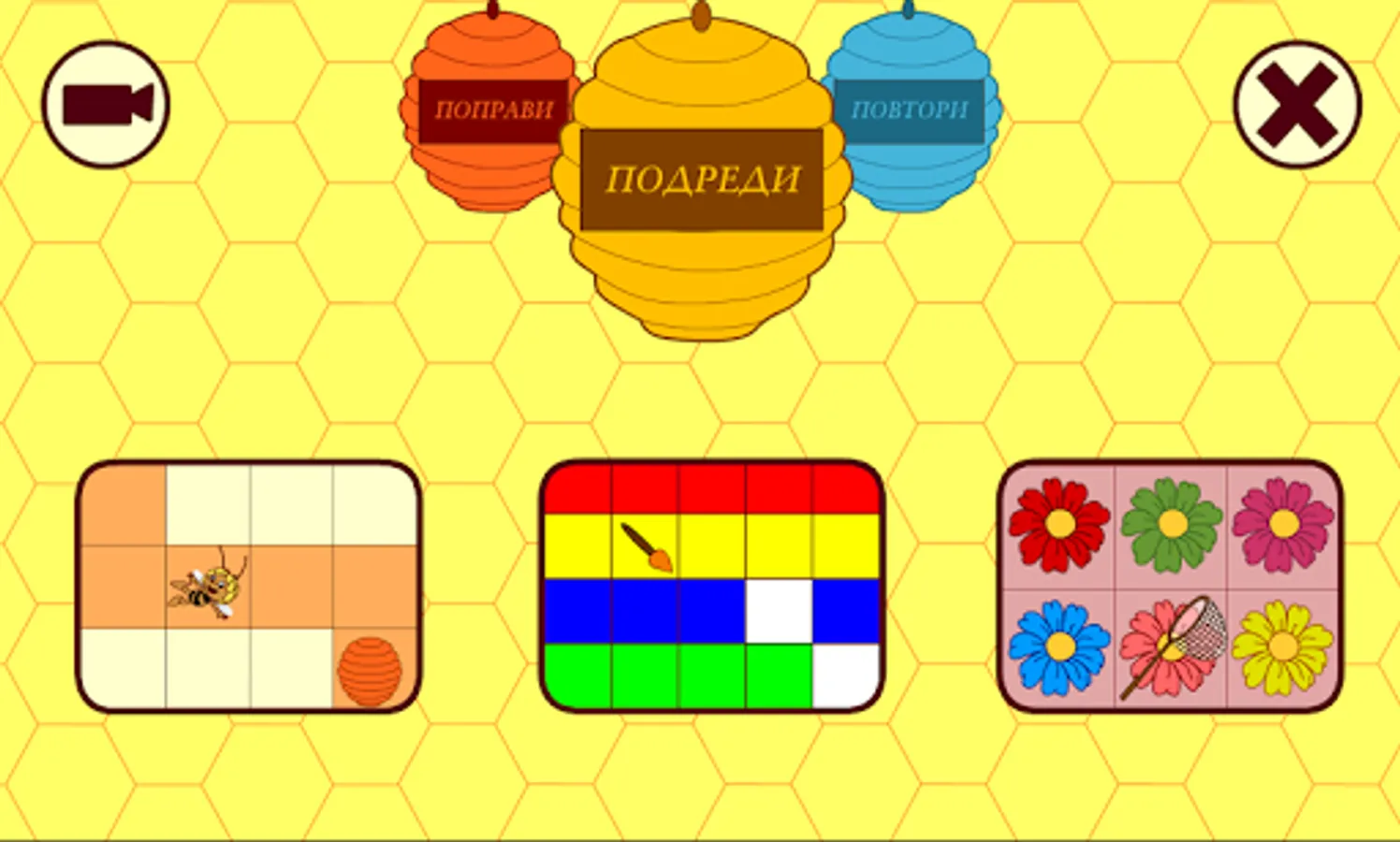 The annex implemented three modules - "Repeat", "Order" and "Correct." For each module has been developed by three games with five different difficulty levels