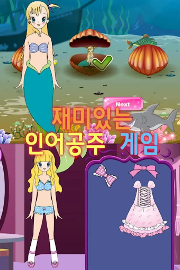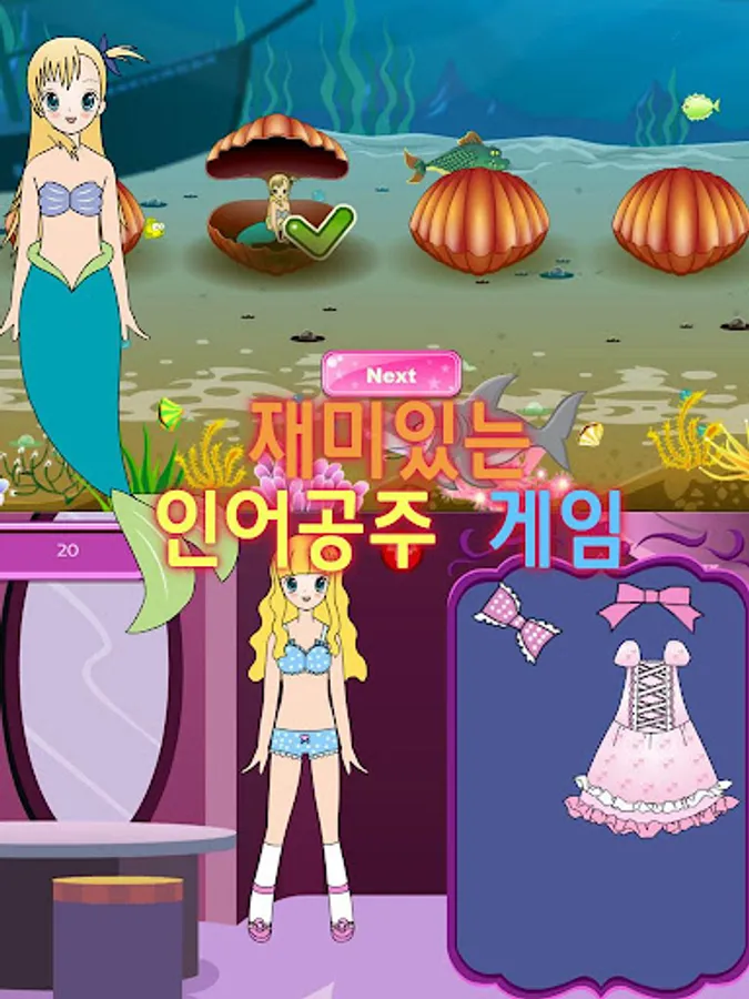 사랑에 빠진 인어공주에게 필요한 것은 무엇일까요? 예쁜옷! - 그러나 인어공주는 어떤 옷도 입어본적이 없습니다. 인어공주에게 좋은 옷을 골라주면 왕자님을 만날 수 있습니다.