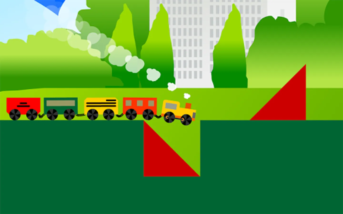 Drag the pieces into place so that the train can drive from left to right without getting damaged. When the pieces are in place, tap play to start the train.
