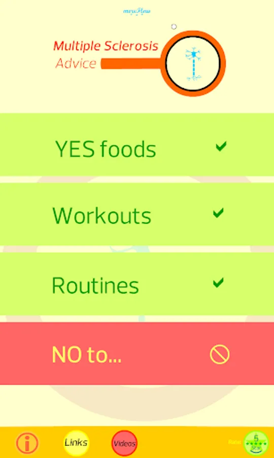 In Multiple Sclerosis Advice you can find simple guidelines to improve your quality of life. What to eat, workouts and lifestyle changes to improve your well-being. Multiple Sclerosis Advice is simple and easy to use. A good reminder for all Multiple Sclerosis patients. Combine a good diet (avoid artificial foods), good routines, and gentle workouts and you can start seeing improvements in your daily life.